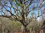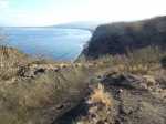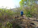 La randonnée débute par la petite route goudronnée située en face du parking du Cap la Houssaye et se transforme très vite en piste terreuse (Photo 1). Repérer, quelques mètres après la barrière, cette ravine sur la gauche dont tout le fond et les rives ont été gunités. Cette couche de béton est un vrai plaisir pour la marche car les herbes n'y poussent pas et les cailloux y sont rares (photo 2). Ne pas hésiter à suivre cette ravine sur un kilomètre. Le vide est parfois tout près et on peut à loisir profiter des panoramas sur la mer et sur les falaises en direction du Cap La Houssaye (photo 3). Elle monte tout d'abord avant de redescendre en direction de la Barrière (Photo 4). La végétation s'intensifie aux abords de la petite ravine qu'on rencontre dans le bas. Sur la gauche, on se retrouve au sommet de la cascade où Jace a peint son Gouzou pendu par le pied à un gros clou (Photo 5). On remarque ainsi qu'il manie aussi bien le harnais et le rappel que la bombe de peinture. Laisser la ravine bétonnée, bifurquer à droite lorsque la ravine finit sa descente, rejoindre le chemin après de nouvelles montées bétonnées et un sentier en terre. On se retrouve sur le plateau de la savane qu'on ne quittera jamais jusqu'au retour (Photo 6). Poursuivre sur la piste et ne pas manquer un écart pour un nouveau point de vue sur le hameau de la Barrière (Photo 7). On y voit la baie de Saint-Paul, les plages de sables gris et les falaises du Cap la Marianne. Plus haut, un croisement de plusieurs sentiers se situe en face de la descente vers la Barrière. Trouver le sentier qui file plein sud. Plus ou moins large, il est toujours très facile et en faible pente (photo 8). On parvient à une piste plus large fermée par une barrière, juste en face de la Ravine Fleurimont (Photo 9). Pas de difficulté pour rejoindre les ponts parallèles de la RN1, passer dessous et filer à droite en direction de la Ravine (photo 10). Là également, la marche est agréable car le terrain est en pente très douce (Photo 12). La montée s'accentue sur un sol de plus en plus rocailleux et l'on domine la Ravine Fleurimont (Photo 13). Une rencontre est possible avec quelques bovins venant brouter dans cette savane (Photo 15). La personne qui les accompagne et les garde est très aimable et profite d'une rencontre pour discuter, contrairement aux nombreux sportifs ne répondant jamais à un bonjour. Sans doute la courtoisie des plaines, à 150 m d'altitude, est-elle différente de celle des hauts sommets ? Les maisons de Plateau Caillou sont proches et l'humidité saisonnière de la ravine a permis l'installation d'une végétation plus haute constituée essentiellement de bois noirs des bas, chocas et épineux (photo 16). La Ravine Fleurimont et son petit affluent se traversent sans trop s'en apercevoir. Le sentier entame une grimpette vers l'héliport de Plateau Caillou souvent repérable aux engins qui décollent ou atterrissent (Photo 17). Une fois la piste d'envol passée, prendre à gauche vers l'héliport et repérer, plus loin, le sentier qui part à droite et descend en direction de la Ravine de Boucan Canot qu'on longe en rive gauche. On aperçoit d'ici la fin des tunnels et les deux ponts sous lesquels on passera bientôt (Photo 18). Le sentier, souvent rocheux, est bien marqué dans la végétation par les incessants passages. On parvient rapidement sous les deux ponts de la RN1. Certains arbres sont déplumés dans le haut à cause des dizaines de tisserins qui ont élu domicile et l'on piétine au passage tous les nids détachés par les femelles insatisfaites du travail acharné des mâles. Longer la ravine jusqu'à la route bétonnée que l'on n'emprunte pas car un sentier débute une dizaine de mètres avant. Le cheminement s'effectue à plat à travers quelques arbustes rabougris (Photo 19). Devant, on aperçoit une colline comportant des géoglyphes obtenus en tondant l'herbe et en y rajoutant des pierres (Photo 20). Rien à voir avec Nazca au Pérou où les figures font souvent plusieurs centaines de mètres ! Poursuivre en rive gauche avant de traverser la ravine et continuer sur le même type de sentier en prenant à droite à la première bifurcation (Photo 21). On parvient très vite en face de ces géoglyphes représentant un cœur, un signe yin-yang, un symbole de paix et le drapeau réunionnais. Une fois sur place, difficile de reconnaître les signes qui sont trop grands (Photo 23). Un sentier serpente entre les figures et quitte le drapeau en son milieu pour filer à l'ouest vers la Ravine Boucan Canot. La descente, un peu sportive, passe entre deux tamarins caractéristiques (Photo 24). Le sentir remonte ensuite vers le nord et rejoint la petite vallée de la Ravine Patent Slip (voir § ci-dessous). Il traverse des zones rocheuses et très caillouteuses et peut devenir technique sur quelques dizaines de mètres (Photo 25). Il se rapproche de la ravine à sec (Photo 26), la traverse et pénètre dans une zone de rochers plantés sur la rive (Photo 27). On aperçoit bientôt les véhicules stationnés sur le parking, fin de la boucle.