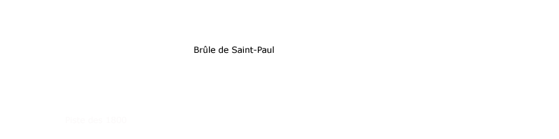 Se rendre vers Saint-Paul par la Route des Tamarins - Prendre la bretelle vers le Guillaume et le Maïdo - Suivre les nombreux panneaux et rouler en direction de la Petite France - Passer le village, la luge, la route du Tévelave et rouler 1500 mètres jusqu'au Parking de la Messe - Débuter par la Piste Forestière des 1800 - Marcher jusqu'à la Ravine Saint-Gilles et la dépasser de quelques mètres - Prendre à gauche le TRÈS discret sentier qui remonte vers le Piton de la Ravine Saint-Gilles (voir explications ci-dessous) - Marcher jusqu'au rempart et le suivre en direction du Maïdo - Traverser le parking et profiter de la totalité du belvédère - Rejoindre le sentier de Roche Plate et poursuivre vers le Piton des Orangers - Au piton, bifurquer à gauche sur le pare-feu Tête-Dure et descendre jusqu'au point de ravitaillement des pompiers - Reprendre à gauche sur la Piste Forestière Oméga et rejoindre la route du Maïdo - Remonter vers le Maïdo, passer la Piste des 1800 et tourner à droite en face du panneau du parking de la Messe - Remonter le sentier en rive droite du Bras de la Ravine Divon jusqu'à la longue grotte avant de rejoindre le parking, fin de la boucle.