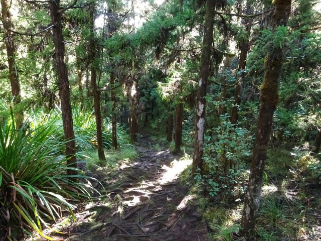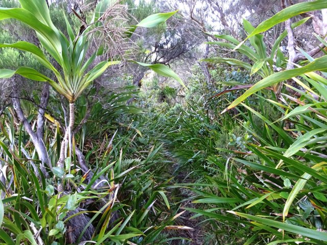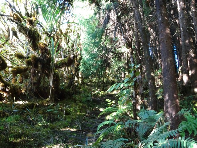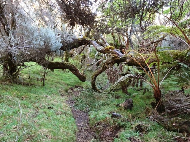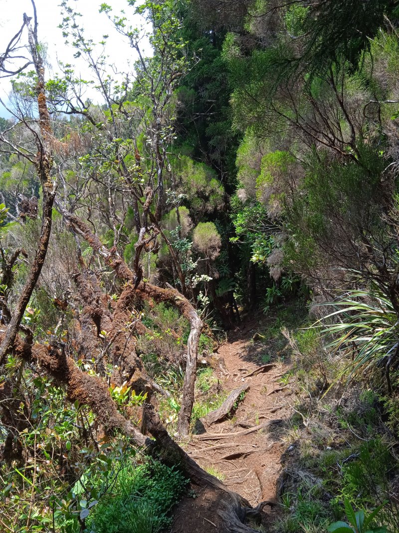 Complément du commentaire de PhilippeJ: quelqu’un a ajouté des balises péi dans la forêt de cryptomerias : les traces de machette sur les arbres sont récents. Cherchez les balises blanches et les entailles.
