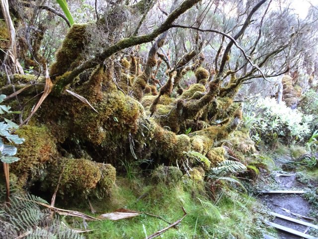 Descente rapide mais nous avons un peu trop levé le nez ... nous sommes sortis du sentier sans nous en rendre compte et avons dû finir les derniers 500 mètres en tâtonnant dans le lit d'une ravine sèche. Cet égarement nous a valu de jolis décors de mousse (cf photos).