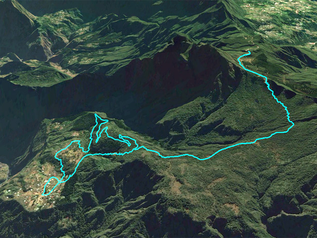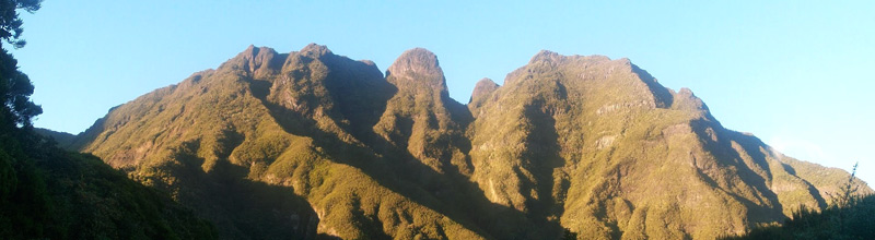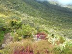 Une autre solution, si on a choisi le casse croûte, est de suivre le GRR1 après la Plaine des Tamarins et de rejoindre le parking en passant le Col de Fourche (voir le circuit vert sur la carte de la photo 26 pour plus de détails). Après le col, il suffit de quitter le GRR1 et de suivre sa variante à travers la forêt de cryptomerias. Ne pas oublier de remonter à gauche à la première route vers le parking.