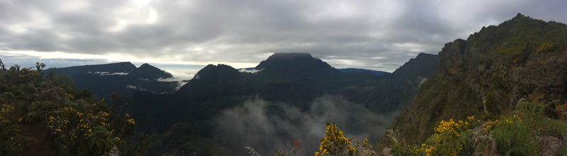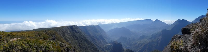 À l’arrivée au Grand Benare un panorama sur Mafate - cilaos - piton des neiges et piton de la fournaise. Grandiose !
