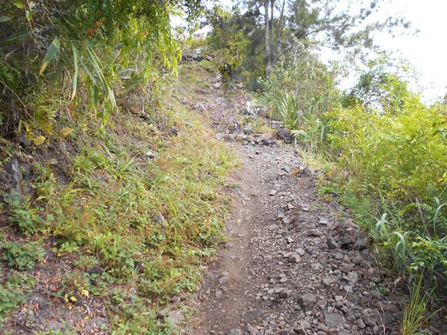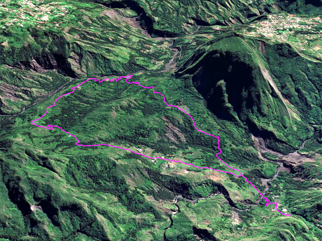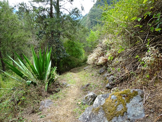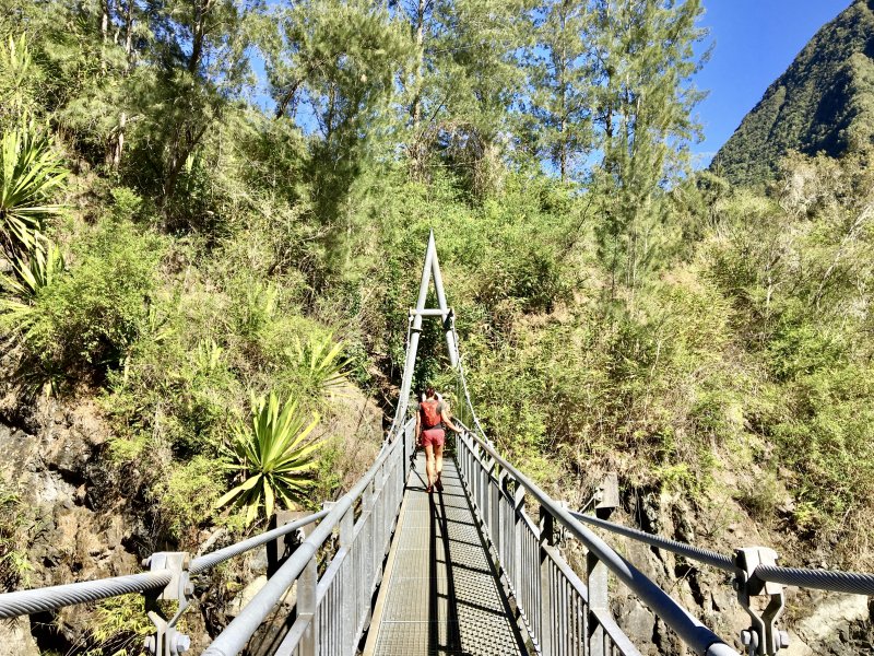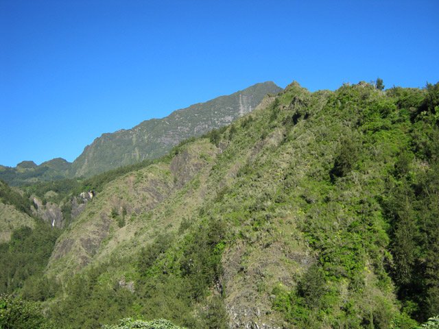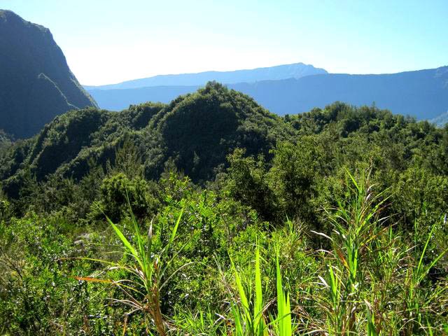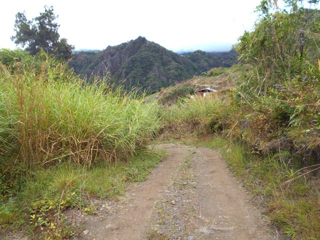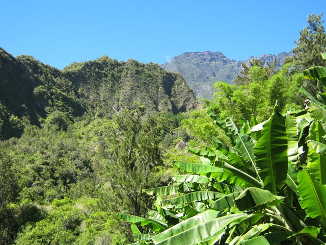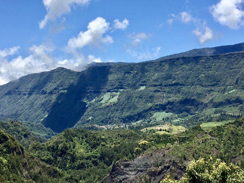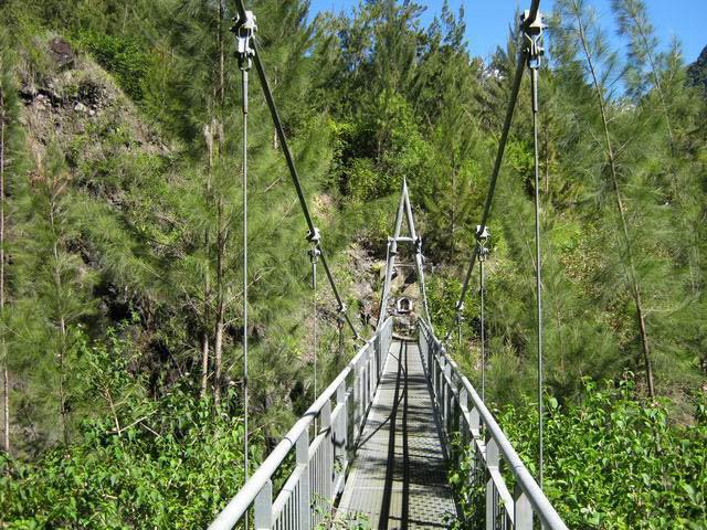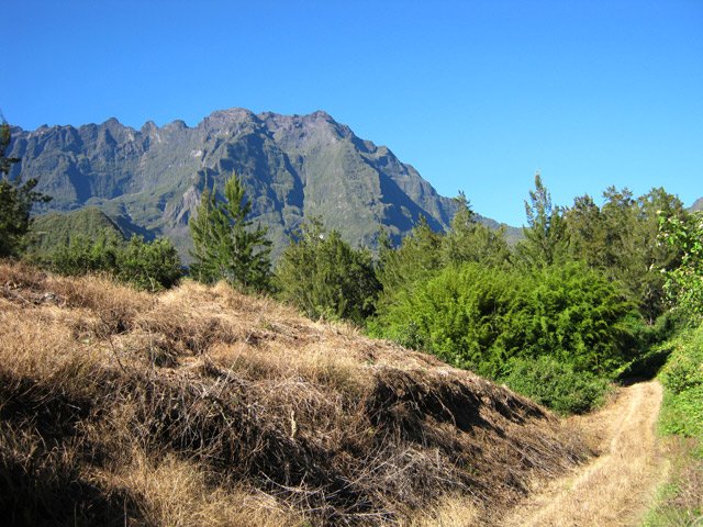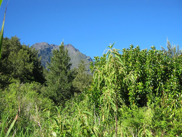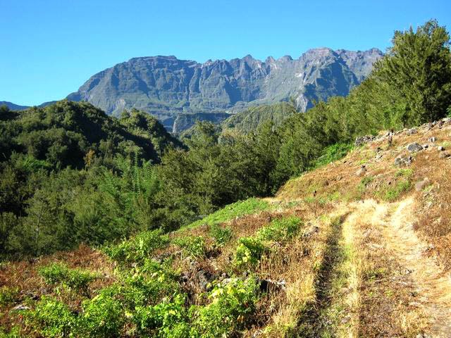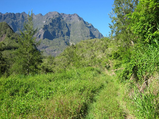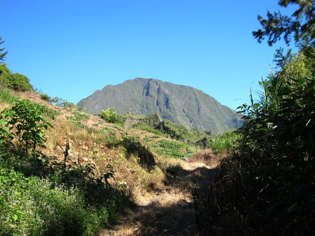 Cette courte mais belle randonnée permet de faire le tour d'un très modeste piton du Cirque de Salazie, le Piton de la Mare d'Affouches. Pour rallonger la sortie, le mieux consiste à partir directement de Hell Bourg afin de profiter des beaux panoramas le long de la route de l'Ilet à Vidot. Au contraire, pour la raccourcir, un parking est situé au bas de la route bétonnée qui mène presque à la passerelle de la Rivière du Mât (cette fiche). Une fois atteint la passerelle, on peut descendre sur la piste qui part à droite et rejoindre le bord de la Rivière. On profite ainsi de quelques vasques d'eau claire pour une baignade si le courant n'est pas trop fort. Quant à la boucle, on se rend compte que c'est une excellente manière de rejoindre Grand Îlet sans employer trop de route. Il y a de plus en plus de pistes ayant remplacé les sentiers mais il reste cependant le beaux sentier n° 3 du Trail de Salazie. La deuxième partie traverse de nombreux champs où les fruits et légumes peuvent se toucher à l'envie ... avec les yeux cela va de soi. Le propriétaire des champs n'aime pas trop y voir de randonneurs dans cette zone car beaucoup de ses légumes disparaissent. Quant au sentier qui quitte les habitations de la Mare d'Affouches pour descendre, assez fortement parfois, jusqu'à Trou Blanc, elle peut être encore effectuée par les habitués qui suivront sa trace encore marquée sur les dernières cartes IGN.