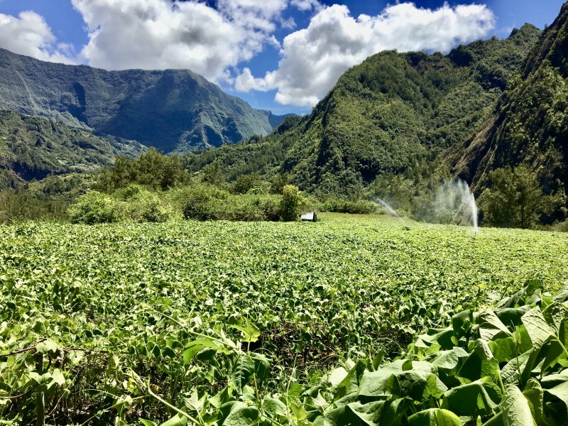 Balade dans les champs à l'ombre du Piton d'Anchain