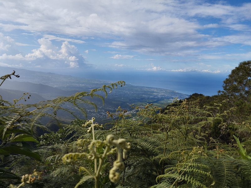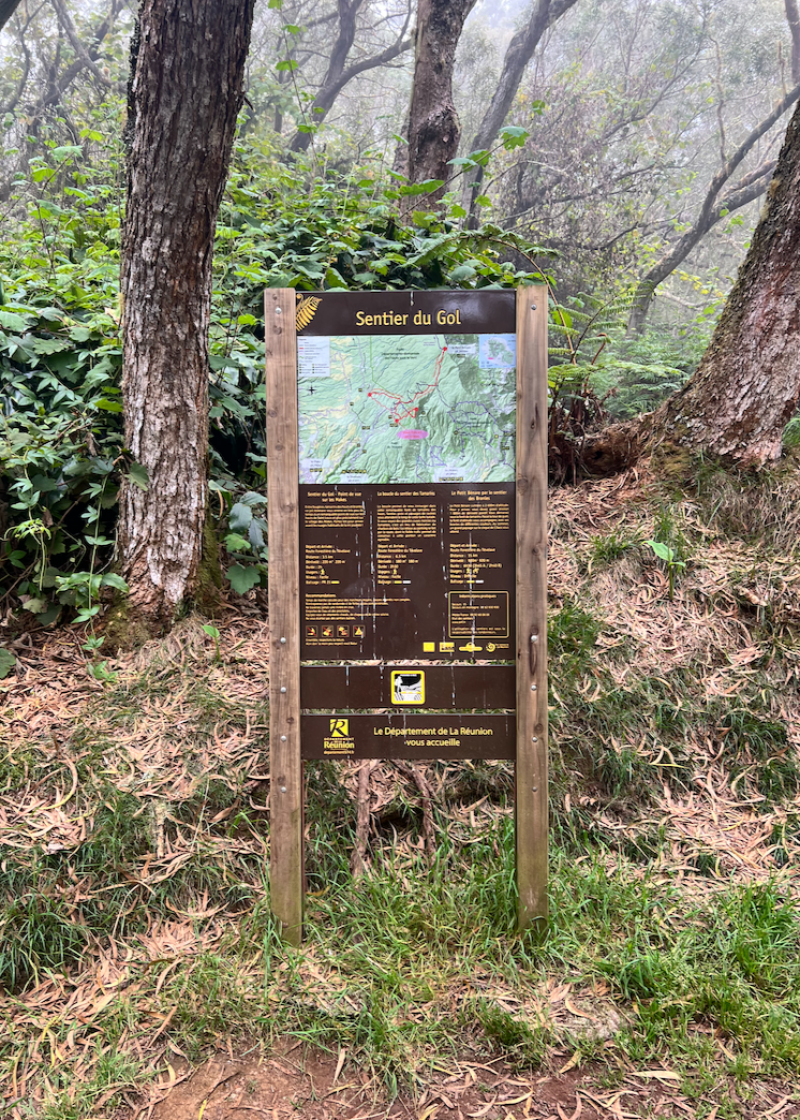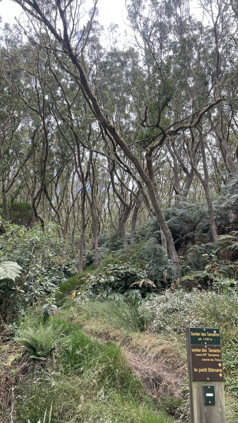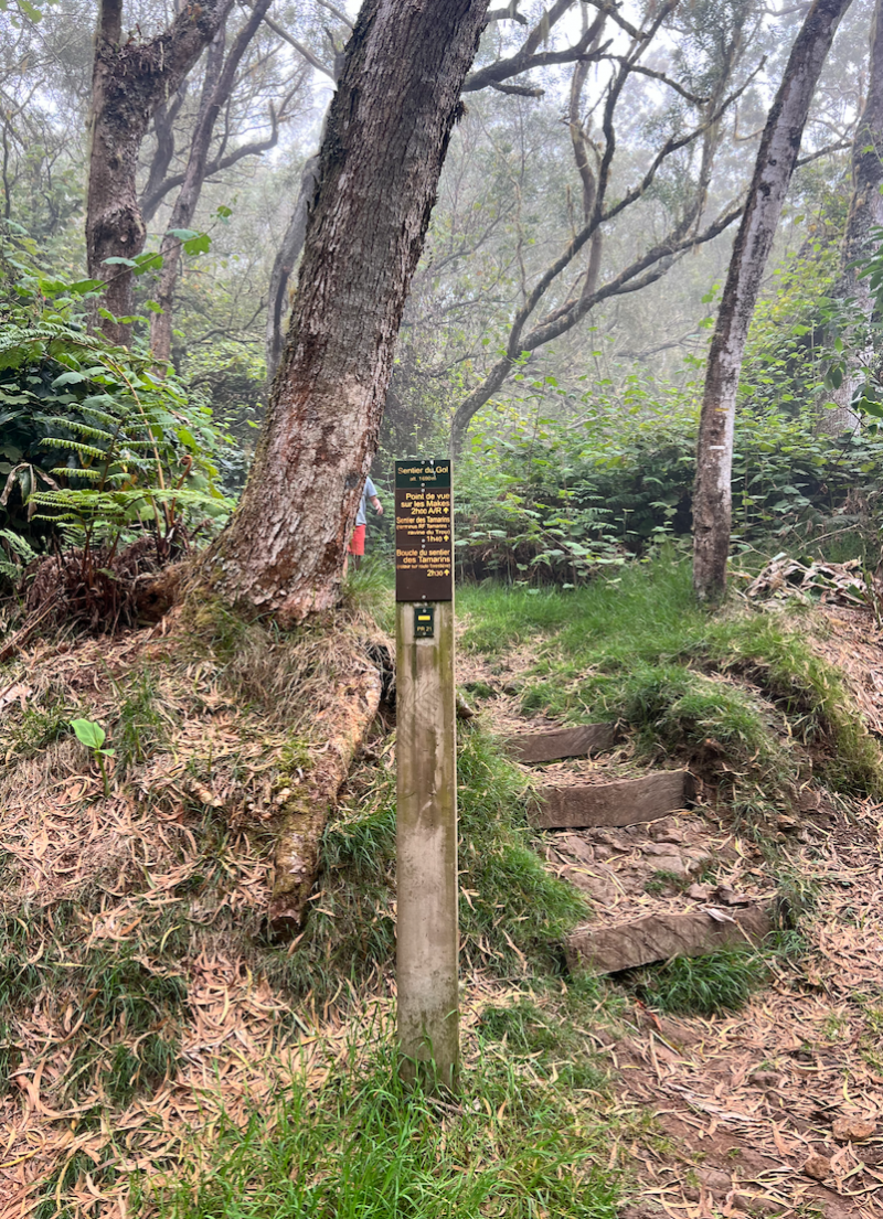 Avant de rentrer, rouler vers le Maïdo, passer le Gîte des Tamarins et se garer au début d'un deuxième sentier des Tamarins (pancartes pédagogiques) - Le sentier fait un circuit en 8, court, propre et relativement facile.