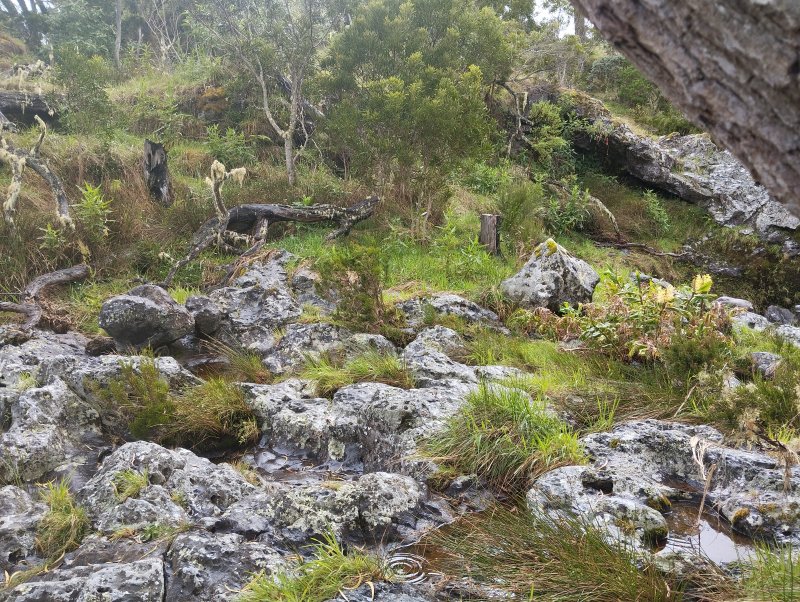 L'emploi de la route sera inévitable sur moins d'un kilomètre avant de retrouver la Ravine de l'Echelle et d'obliquer sur la gauche pour retrouver des sentiers et pistes herbeuses sous les tamarins pour un retour au point de départ (Photo 23). D'autres sentiers ou pistes sont présents dans les lieux et peuvent donner lieu à un prolongement de randonnée sous les tamarins. Il est également possible de visiter le chantier des charbonniers sur la piste du retour ou d'effectuer un détour vers la Caverne Tabac.