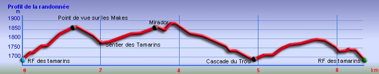 Cette marche permet de contempler de magnifiques tamarins des hauts dans cette immense forêt des Hauts du Tévelave exploitée et domestiquée par l'ONF. Aucune difficulté particulière pour cette courte randonnée en sous bois qui permet, dans sa première partie, de profiter du point de vue sur les Makes à condition de partir tôt afin d'éviter les brumes fréquentes puis de visiter d'autres forêts de tamarins le long des pistes ou sentiers de qualité.
