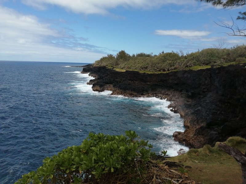 Plus aucun commentaire depuis 2017... il fallait changer cela ! Nous avons fait la boucle dans le sens de la fiche en nous garant près des restaurants vers « la mer cassée » (grand parking). On plonge immédiatement dans la forêt/jungle/vanilleraie. C’est beau, c’est vert, moussu, il ne fait pas encore humide, il n’y a pas de moustique, c’est le moment d’y aller ! Le chemin de Ceinture se fait sans encombres, à peine un coup d’œil sur le gps. De jolis panoramas sur la côte, avec champs de cannes au premier plan.
