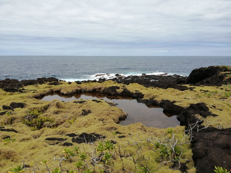 Après la partie de route pas géniale mais inévitable, en quelques dizaines de mètres on replonge dans la forêt, loin des bruits de moteurs. Nous avons suivi au maximum les sentiers de pêcheurs en bord de falaise, c’était plus joli et une bonne brise nous rafraîchissait. Mais parfois il fallait remonter un peu pour retrouver la trace "officielle" qui seule permettait de passer quelques failles trop encombrées de vacoas.