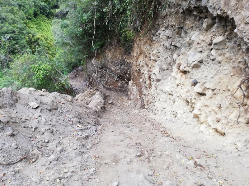 La première partie de cette randonnée s'effectue par cette ancienne piste en terre qui présente des traces de fréquentation piétonne. Le passage se fait sans difficulté mais présente des risques de chutes de pierre et d'effondrement.