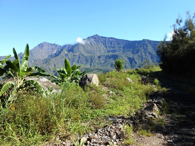 Devant soi, c'est toute la partie Ouest du cirque qui passe par la Fenêtre des Makes, le Petit et le Grand Bénare, le Taïbit, les Salazes, le Gros Morne et le Piton des Neiges.