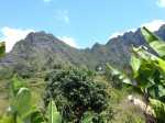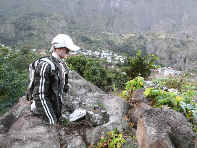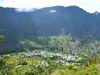 Depuis les rochers on peut voir le sud du Cirque de Cilaos avec le Dimitile à gauche, l'Îlet à Cordes à droite ainsi que le Piton Morel qui cache une partie du Piton de Gueule Rouge.