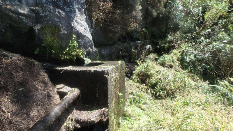 La canalisation du Nez de Bœuf a été installée en 1967 pour alimenter une cuve de 250 m3 située à Notre Dame de la Paix à partir d'une source coulant à 1820 m d'altitude au pied du Nez de Bœuf . D'un faible débit de 1 litre/seconde et endommagée par de nombreuses fissures dues à des éboulis, son exploitation a été abandonnée au début des années 90. Le sentier qui suivait le tuyau a bénéficié de 25 ans d'isolement permettant l'installation de végétation qui en a vite interdit l'approche. Un accès se situe au pied du Nez de Bœuf , l'autre proche du Piton Bibasse à Notre Dame de la Paix. Martial, Philippe, Francis et Emmanuel, munis de leur sabre, sont descendus à la canalisation en nettoyant à tour de bras les parties les plus endommagées. Martial a tenu à nous faire visiter cette source d'eau fraîche et limpide, à peine polluée par les élevages situés 200 m plus haut. Nous avons pu ainsi battre un nouveau record en mettant 4 h 15 pour effectuer 2900 mètres. Autant dire que cette sortie se situe très loin des critères de la randonnée familiale et que seuls les habitués de ce genre de parcours et dotés d'un bon sens de l'observation et de l'orientation pourront s'offrir le suprême bonheur de contempler les magnifiques paysages offerts par cette descente très sportive.