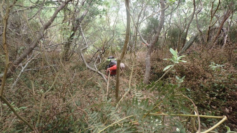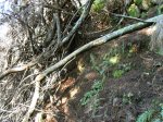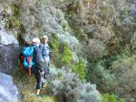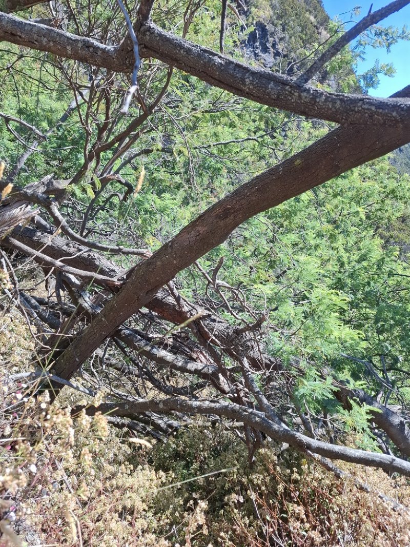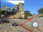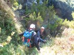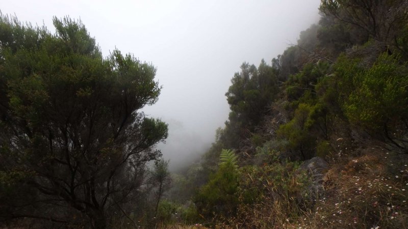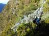 J'ai reussi à descendre jusqu'au fond de la ravine, qui n’est deja pas une mince affaire en soit, vegetation tres haute, tres dense, sol tres glissant alors qu’il n’a pas plu depuis plusieurs jours, pierres qui se désagrègent, pollen de bois de branles, parois verticales et j'en passe.. Je n’ai pas trouver la bifurcation pour partir sur la gauche alors que jai fait plusieurs tentatives. La trace GPS n'était vraiment pas très précise dû au manque de réseau et comme le brouillard commençait à rentrer, j'ai trouvé ça plus raisonnable de rebrousser chemin. En remontant, je n’ai pas retrouvé le passage par lequel je suis descendu, j’ai donc voulu escalader une parois rocheuse qui s'est avérée très instable, je suis sorti de là avec une énorme frayeur et des griffures sur l'ensemble du corps. Une fois en haut, ma trace GPS a finalement montré que je n'étais pas encore dessus assez bas pour trouver la bifurcation à gauche.