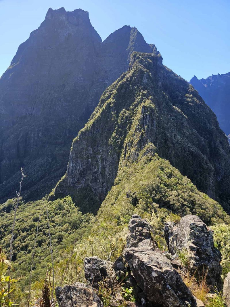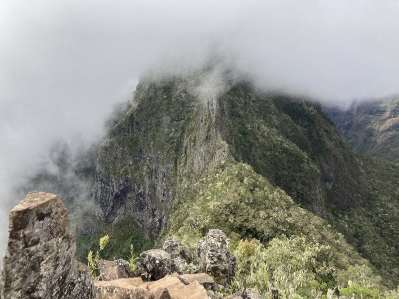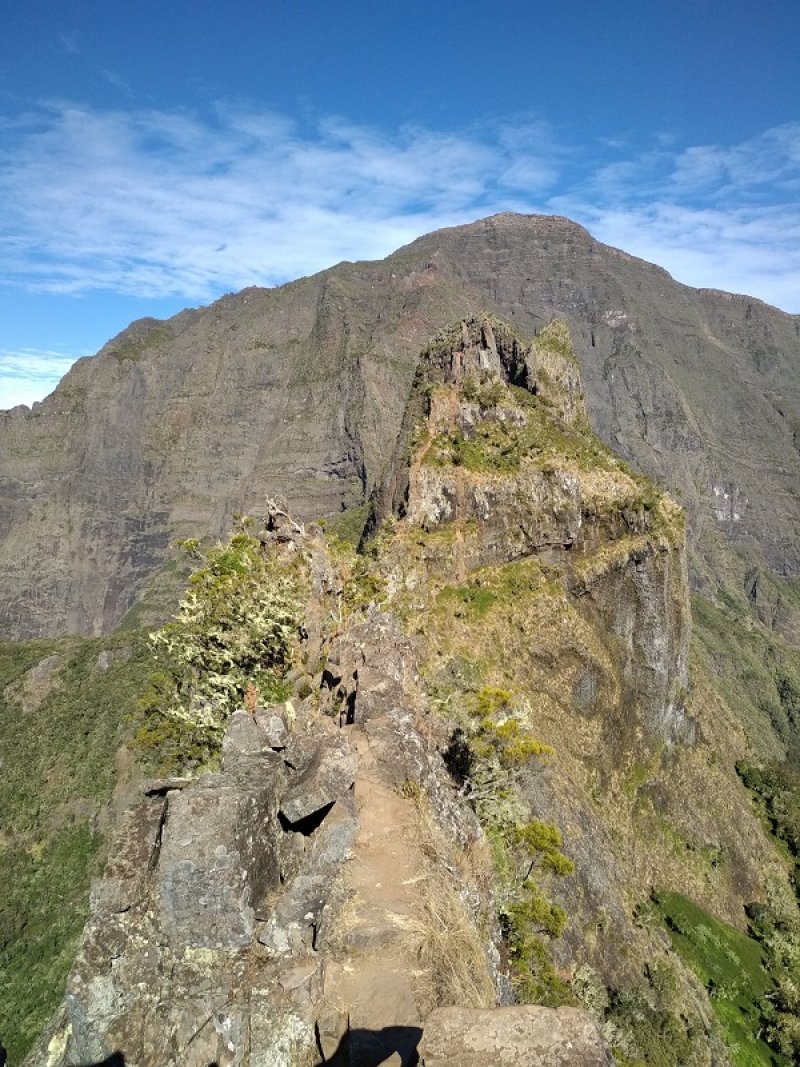 Parmi mes vues préférées de l'île ! On s'est arrêté au Pic de l'allégresse juste avant le dernier passage délicat (les 50 derniers mètres). Avant ça, il y a déjà quelques passages bien vertigineux sur la crête. Pour arriver à la crête, le sentier est propre mais technique, les cordes sont toujours bien en place et je ne tenterai pas ce parcours s'il pleut.