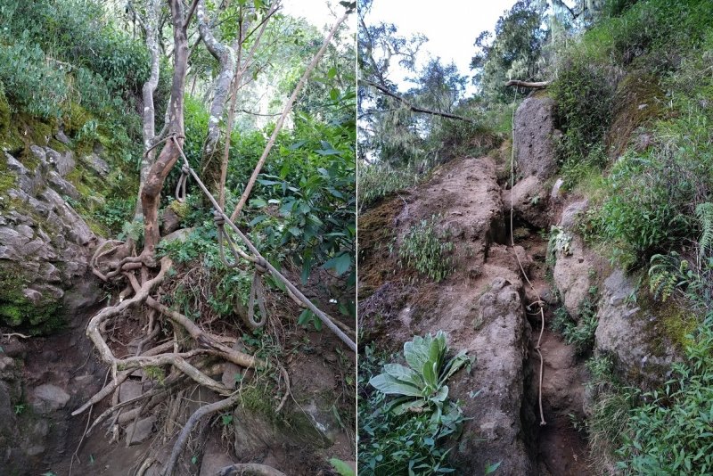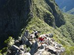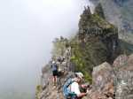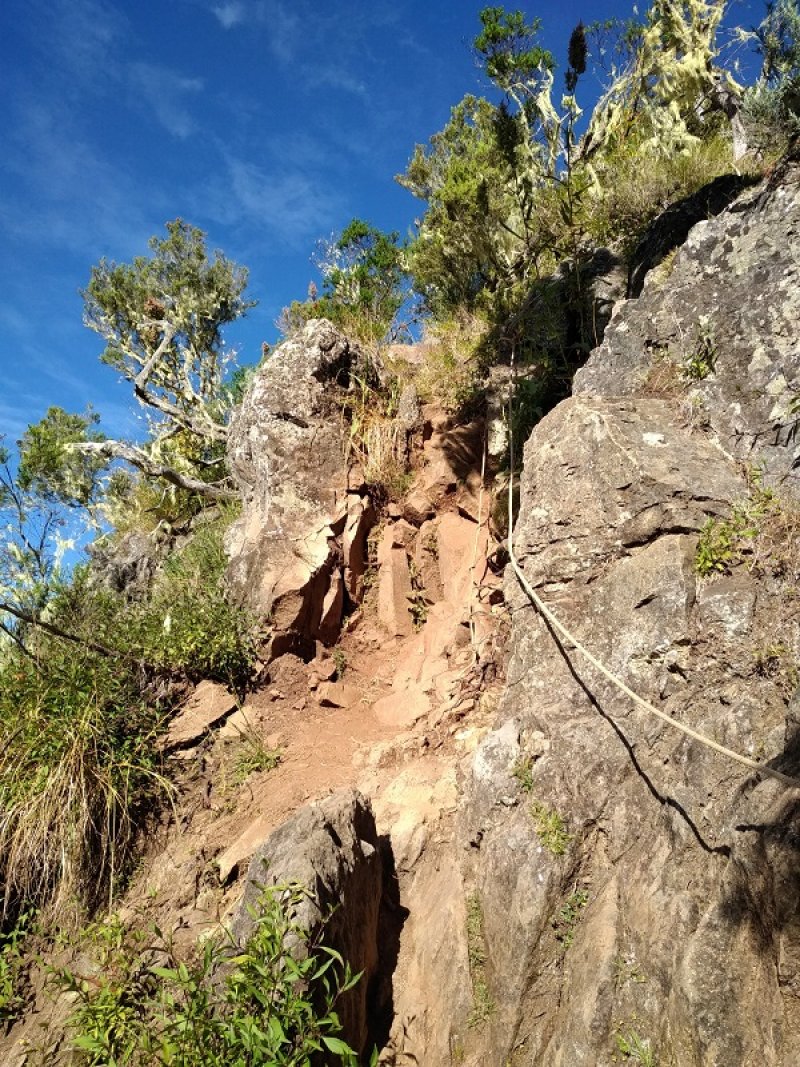 Je n'ai pas été jusqu'au bout ne faisant que la moitié de la crête, d'abord un sentier bordé de végétation puis sur de gros blocs stable, les passages délicats sécurisé par des cordes, pas d'inquiétude.