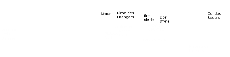 La randonnée débute de manière assez sportive par l'escalade du sentier du Col du Taïbit maintes fois décrite. Des marches régulières, parfois un peu hautes, facilitent l'ascension mais chauffent déjà les cuisses. Les lacets sont nombreux et indispensables pour franchir le rempart jusqu'à l'Îlet des Salazes. La pente devient moins forte à partir du kiosque de l'association des Trois Salazes qui sera bien placé au retour pour y prendre une infusion de plantes cueillies dans l'Ilet (Photo 1). Poursuivre après le kiosque par la traversée d'une zone où trônent d'énormes rochers dégringolés du Nez de Bœuf. Le sentier de Cap Bouteille est très facile à trouver dans une zone presque plate. Il n'est pas difficile au début jusqu'à la Source des Salazes, une zone très végétalisée et fleurie (Photo 2). Au petit matin, les paysages sur la vallée et les crêtes du Dimitile sont magnifiques (Photo 3). Devant, les créneaux du Gros Morne se dessinent et on remarque très bien le Cap Bouteille qui permet d'en apercevoir le fond du côté des sources du Bras Rouge (Photo 4). On aperçoit à gauche l'imposante muraille verticale des Salazes et le Col Choupette situé au plus près d'une dent rocheuse qui émerge sur la crête (Photo 5). Les Trois Salazes donnent très vite une idée de la pente qu'il faudra franchir avant de rejoindre l'arête et on remarque surtout la falaise verticale qui deviendra très impressionnante là-haut (Photo 6). La première partie, jusqu'à la Source du Cap Bouteille est une agréable promenade. Quand on a repéré le départ du sentier des Salazes sur la gauche (voir § ci-dessous), entamer une montée qui sera de plus en plus difficile. Le sentier, caillouteux et encombré de racines monte assez fortement en moyenne et devient très sportif à l'approche du Col Choupette jusqu'au début de l'arête (photo 9). Les points de vue sont rares mais très beaux (photo 8). On arrive enfin au col et on admire immédiatement le Morne de Fourche, la Plaine des Tamarins, le Col des Bœufs et tout le Cirque de Mafate (photo 10). En dessous, on remarque la mare du Plateau de Kerval et les troupeaux qui y vivent paisiblement (photo 11). Tout le monde peut donc aller jusqu'à ce premier promontoire, même ceux dont les jambes flageolent, pour profiter de cette vue unique et déjà extraordinaire. Une fois au col, ils pourront revenir au point de vue du Cap Bouteille jusqu'à la source. Les choses se compliquent par la suite lorsqu'il faut franchir, sur des cailloux parfois branlants, étroits et menaçant de tomber dans le vide (Photo 12), les quelques centaines de mètres qui mèneront au pied du dernier mamelon sur lequel se dressent les trois sœurs. Des pitons sont installés partout et peuvent servir à sécuriser les personnes manquant d'assurance à qui il est d'ailleurs fortement conseillé de faire appel à des professionnels. La montée peut débuter, tout d'abord dans un entrelacs de roches tombées dans tous les sens (Photo 13). Certaines portions sont vraiment très étroites et bordées d'impressionnants précipices ; elles nécessitent l'entière attention du marcheur (Photo 14). On domine Marla qui semble très éloigné depuis ces hauteurs (Photo 15). L'attention doit être de tous les instants car la majorité des roches ne sont pas très stables ; il ne faut admirer les paysages qu'une fois arrêté (Photo 16). Le parcours est plus difficile qu'on l'imagine vu de loin car il effectue de nombreuses dents de scie (Photo 17). Une fois la petite grimpette dangereuse terminée, il faudra descendre tout aussi dangereusement, et cela plusieurs fois (Photo 18). On avance, tels des cabris, toujours à chercher le meilleur passage (Photo 19). Le Grand Bénare, inaccessible, semble pourtant bien proche (Photo 21). Certaines portions sont si étroites qu'on voit en même temps les à-pics sur les deux cirques, dont certains totalement verticaux (Photo 23). Il faut pourtant affronter encore quelques centaines de mètres sur l'arête étroite pour s'approcher des trois dents de Madame Desbassyns (Photo 24) ! Après avoir admiré une dernière fois les deux cirques, il faut hélas songer au retour. Mais que de souvenirs dans la tête pour cette fabuleuse sortie acrobatique !