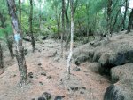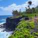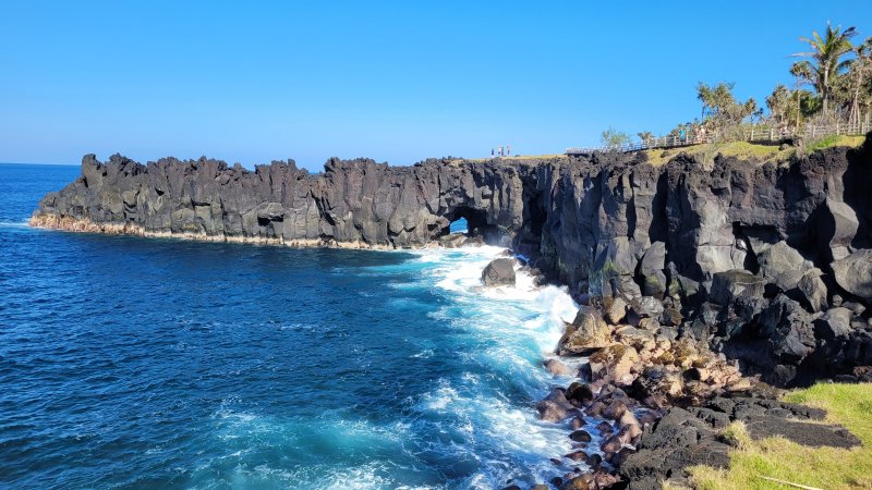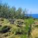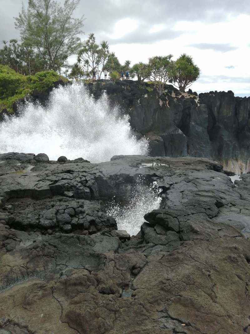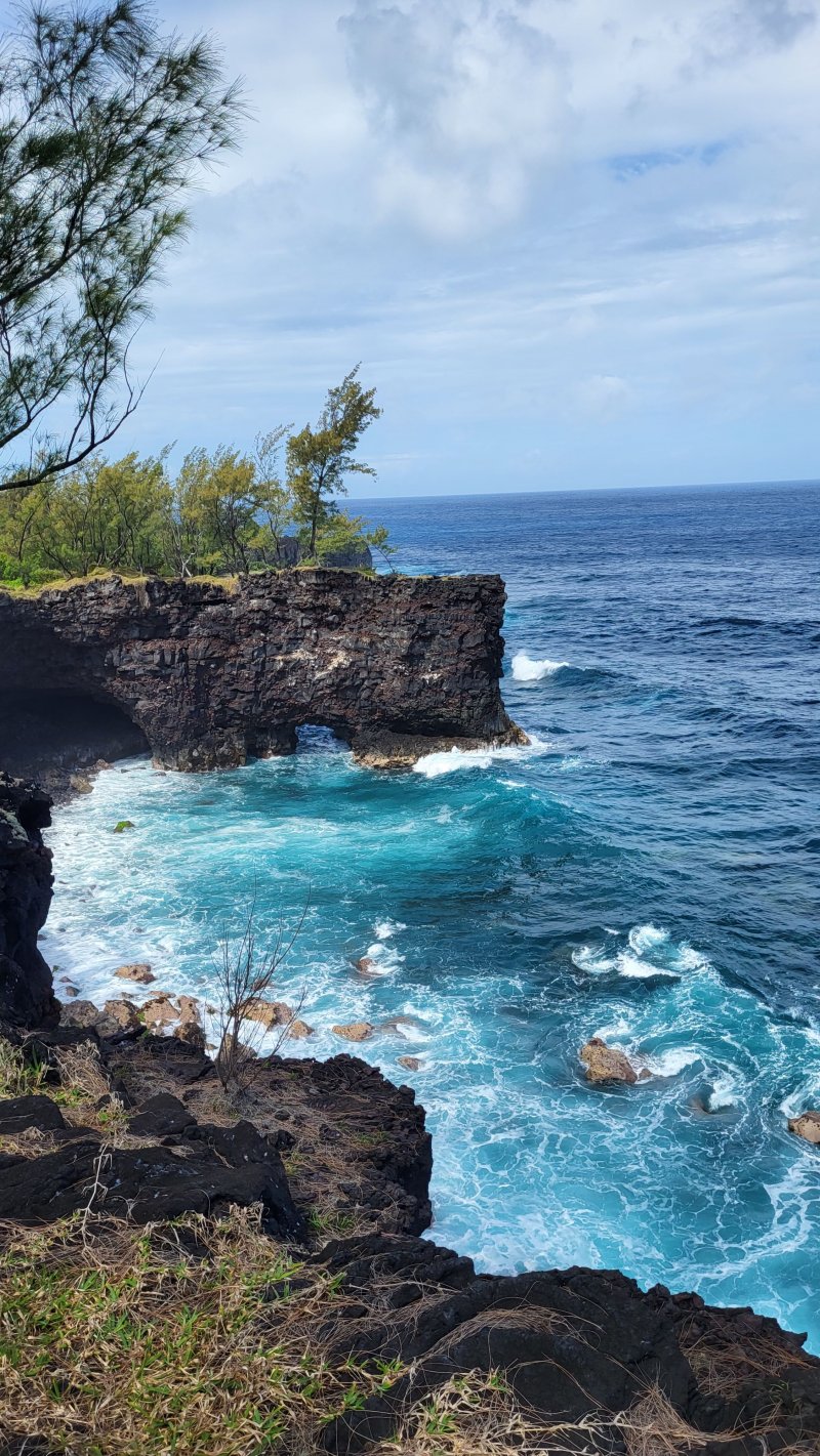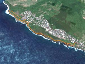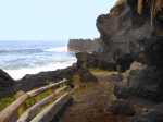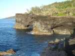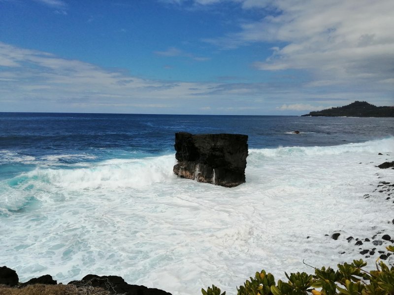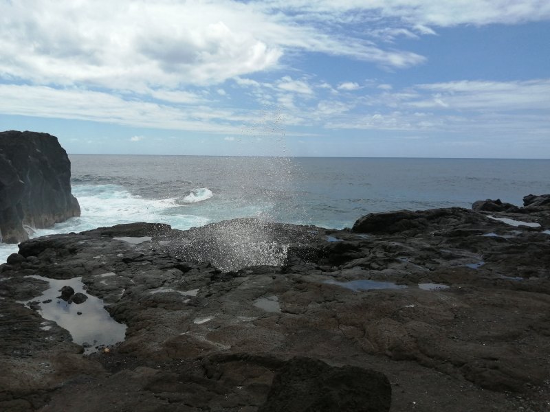 La randonnée débute près des kiosques à l'ombre des vacoas du Cap Méchant. Filer immédiatement sous les filaos en direction de l'océan (Photo 1). Les filaos sont remplacés par un magnifique gazon pique-fesse, un gazon digne d'un green de golf, jamais tondu et toujours court (Photo 2). Obliquer sur la droite et rejoindre l'escalier repérable de loin aux barrières de protection, (Photo 3). L'escalier en pierre de lave aux très hautes marches permet de descendre à proximité de la mer qu'on voit déjà éclabousser les rochers du Fond de Parc. Se rapprocher des vagues et suivre le sentier étroit mais bien visible. Il serpente entre les roches de lave recouvertes de longues herbes. Éviter les hors sentiers à cet endroit qui comporte quelques fissures rendues invisibles par cette traînasse et privilégier les petites sentes de pêcheurs garantissant des endroits sûrs. On peut ainsi se rapprocher d'un puits dans la lave qui présente un grand souffleur quand la mer est forte (Photo 4). Plus loin, on aperçoit les falaises trouées d'arches naturelles qui ne resteront pas des siècles en raison de la puissance des vagues (Photo 5). Très vite, des oiseaux sombres en vol indiquent l'endroit de prédilection des macouas qui y nichent à la saison. Ils se rassemblent ici par dizaines (Photo 6) et on peut approcher certains nids à moins de 2 mètres en rampant sur le bord du précipice (Attention à la chute). Les oiseaux se contentent de tourner la tête mais ne sont pas effarouchés. Les plus belles photos se font lorsque l'oiseau est en vol, entre le haut de la falaise et les vagues blanchies par l'écume. Lorsqu'ils sont en mer, leur habitat est trahi par leurs déjections blanches qui forment de petits tas de guano. Le sentier se poursuit, parfois étroit, et longe le rempart jusqu'au Cap Mascarin (Photo 7). Depuis le couvert des nombreux vacoas, on voit très bien des ilots basaltiques proches de la côte (Photo 8). On peut rejoindre plus loin la Ravine de Basse Vallée mais un sentier part sur la droite. L'emprunter et entamer la remontée vers l'hôtel abandonné. On devine la vallée de la ravine qui remonte vers la RN2 (Photo 9). Un sentier, plus discret, file en direction de la ravine et d'un haut mur d'escalade. Ce n'est pas une aventure extraordinaire que de le rejoindre pour y rechercher les noms originaux donnés aux voies de grimpe (Photo 10). On ne peut l'escalader qu'avec le matériel de professionnel et gare à la chute pour ceux qui voudraient s'y essayer sans entraînement. Poursuivre sur le sentier principal qui serpente dans les fougères et vacoas sur un sol rocailleux et rejoint en quelques minutes le grillage entourant les ruines de l'hôtel (Photo 11). Longer sans difficulté la haute clôture puis la piste (Photo 12). Délaisser l'escalier remontant vers le terrain de sport de Basse Vallée (Photo 13). Le sentier se termine à l'escalier pris pour la descente après avoir longé une haute barre rocheuse (Photo 14). Retrouver le gazon endémique (Zoysia matrella, gazon pique-fesses) et longer l'océan en passant près du Cap Méchant dont on ne verra l'arche qu'en descendant de nouveaux escaliers (Photo 15). Ces escaliers qui passent dans de hauts pans de falaise permettent de s'approcher des kiosques de pique-nique. Poursuivre vers l'est en suivant les balises bleues sur les filaos (Photo 16) (quand ils ne sont pas fraîchement coupés). Le cheminement est facile malgré les creux et bosses d'un terrain assez accidenté (Photo 17). Le sentier passe tout d'abord sur de grandes herbes puis sur d'épais tapis d'aiguilles de filaos qui recouvrent le sol. Sans être de grands aventuriers, quitter ce sentier balisé de bleu pour suivre d'autres passages marqués de blanc ou de orange pour s'approcher des falaises et des vagues et ainsi profiter de paysages plus aquatiques (Photo 18). Le cheminement s'effectue au lus près de la falaise sans grand danger (Photo 19). Repérer alors les lavengères qui adorent vivre sur la lave où les embruns salés les arrosent en permanence (Photo 20). Quand le passage devient plus difficile, reprendre le sentier officiel pour le quitter à nouveau après un passage herbeux sous des filaos et rejoindre la zone chaotique de rochers battus par les énormes vagues au Port dont un gouffre sans fond (Photo 21). Attention à la chute douloureuse sur les laves solidifiées pour s'approcher des gouffres, failles ou arches dont une magnifique qui vaut à elle seule ce petit écart qui emprunte d'ailleurs un ancien tracé du sentier littoral où l'on rencontre encore les balises de l'époque (Photo 22). Poursuivre vers la Ravine Pérote et la suivre pour retrouver le pont de la N2 (Photo 23). Le sentier se finit à l'arrêt de bus "Rue du 10 mai 1981". En traversant la Ravine Pérote, on peut poursuivre vers le Souffleur d'Arbonne. Faire demi-tour et rejoindre le Cap Méchant en prenant cette fois exclusivement le sentier balisé entre fougères et trainasse (Photo 24 et Photo 26). Au Cap Méchant, à un très grand filao, prendre à droite pour rejoindre le premier kiosque sur la droite et grimper les escaliers qu'on aperçoit déjà de loin (Photo 27). On passe au plus près du Puits des Français, une cavité dans la falaise, bouchée de grandes fougères au pied d'une rampe formée de marches (Photo 28). Emprunter cet escalier qui finit au parking du premier restaurant et rejoindre le véhicule en longeant les deux autres établissements qui reçoivent chaque week-end des centaines de convives.