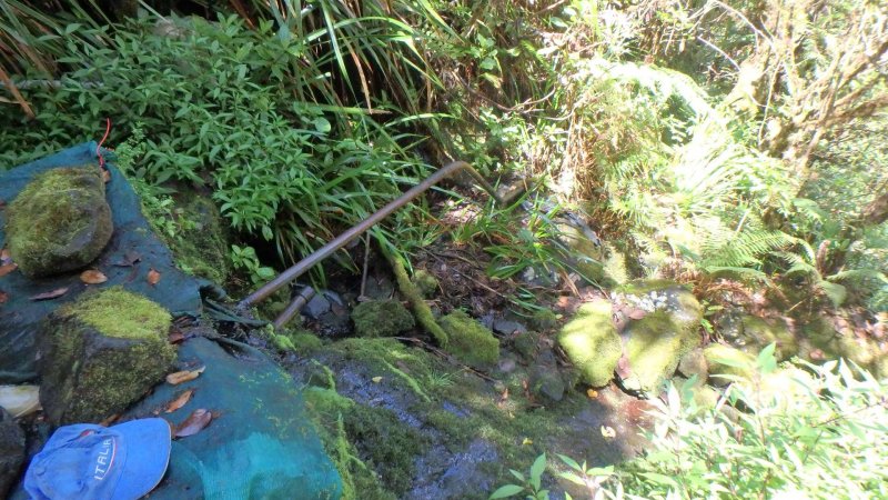 En effet, ce sont des centaines de mètres de canalisations qui ont été portés et soudés dans une végétation hostile mais surtout sur une pente de plus de 50% de dénivelé (voir profil). Les derniers mètres avant la source s'effectuent à quatre pattes et en s'aidant des branches ou arbustes. Un coup de chapeau aussi au découvreur de la source qui ne disposait pas à l'époque d'un hélicoptère pour la reconnaissance.