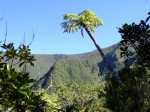 La randonnée débute au Gîte de Basse Vallée qu'on rejoint après une longue montée sur la petite route à double sens (Photo 1). La Route Forestière du Rond passe devant le gîte et pénètre sous les cryptomerias (Photo 2). Marcher sur cette très agréable piste recouverte de cailloux ou d'herbe jusqu'à son terminus en longeant des aires de pique-nique abandonnées, démontées ou dans un triste état car la piste, très chaotique, décourage sans doute les familles qui n'ont pas le temps de marcher depuis le gîte (Photo 1). Cette partie de mise en jambe s'effectue facilement et rapidement. La piste se termine d'un seul coup par une zone de demi-tour et il faut chercher un peu des yeux le sentier qui se poursuit le long de la canalisation. Des ruches sont installées sous les grands conifères mais on laisse travailler les ouvrières (Photo 4). On remarque depuis quelques temps une petite canalisation posée au sol. Une fois sur le sentier, impossible de se perdre le long de ce long tuyau, totalement rectiligne (Photo 5). Le sentier effectue un court virage avant de repartir sur la droite. Dans l'angle, le sentier qui menait à la Ravine de Basse Vallée est de plus en plus bouché par des milliers de sabres marrons (Photo 6). On pouvait encore, il y a quelques années, se balader plus facilement dans le fond de cette rivière rocheuse et remonter jusqu'à la cascade en amont mais il faut désormais y mettre beaucoup de bonne volonté. Poursuivre sur un tracé très rectiligne dans les bois de couleurs et quelques vignes marronnes (Photo 7). Difficile, au début, de perdre de vue le sentier étroit car il est encore bien tracé (Photo 8). En période pluvieuse, les sabres mouillés trempent les vêtements (Photo 9). Inutile pourtant de les éviter car ils sont si nombreux et serrés par endroits qu'on ne peut les éviter (Photo 10). Quelques trouées dans la forêt permettent de voir le rempart de la Vallée Heureuse et les premières pentes en direction de la source (Photo 12). Quelques courtes pentes se grimpent sur de hautes marches et les mains sont parfois utilisées (Photo 13). Le tuyau épouse la forme du terrain, descend vers les ravines et remonte de l'autre côté en servant de rampe d'escalier (Photo 14). La portion qui peut sembler difficile aux marcheurs peu habitués à la brousse prend fin bientôt quand on aperçoit devant la vallée du Bras d'Alix (Photo 15). On marche alors dans une superbe végétation de bois de couleurs, de branles verts couverts de mousses, d'épiphytes, de fougères (Photo 16) ou d'orchidées (Photo 19). Le sentier est toujours aussi étroit dans les branles et fausses osmondes (Photo 17). Il devient très pierreux, voir rocheux par endroits (Photo 18). On arrive ainsi au Bras d'Alix et sa canalisation qui l'enjambe (Photo 22). Le Bras d'Alix est un torrent sans eau, très rocheux, offrant en amont une belle vallée qu'on peut visiter en fin de descente, au retour (Photo 23). Trois solutions sont alors possibles à partir de la ravine. La solution facile consiste à remonter le bras jusqu'à la cassure de la Cascade (non prévue sur la carte). Il suffit de faire attention où poser les pieds sur les innombrables galets. Le détour revêt un peu plus d'importance s'il y a de l'eau dans la cascade (rare). Si on manque d'habitude de ces milieux, faire demi-tour par le même sentier. Une solution plus sportive consiste alors à redescendre le Bras d'Alix par rapport au tuyau et retrouver plus bas et en rive droite le petit cairn (Photo 4) et le sentier qui repart vers l'amont et ne tardera pas à remonter de manière totalement abrupte jusqu'au captage de la source. Cette partie est à réserver aux sportifs qui n'ont pas peur de se salir les mains en les posant au sol ou en agrippant les branches, seule manière de remonter le long du tuyau sans chuter ou glisser vers le bas. La canalisation, toujours visible, sert de guide et de corde à nœuds ; l'effort économisé pour trouver le passage sert à la poussée jusqu'au captage. Les points de vue sur la vallée sont nombreux dans la montée (Photo 26) et (Photo 27). La modeste source est plus un suintement qu'une cascade et l'eau est récupérée par un minuscule barrage avant d'être canalisée (Photo 28). La descente est beaucoup plus scabreuse mais les arbres sont assez nombreux pour servir de rambardes naturelles. Sortie pédagogique sur les métiers des poseurs de tuyau qui doivent avant tout être de bons randonneurs. Quand le mal de cuisse est trop fort, il suffit de penser aux deux ouvriers qui tenaient le tuyau pour le monter toujours plus haut et l'ajuster aux autres posés là les jours précédents. Ils devaient maintenir l'équilibre, grimper les mêmes pentes tout en travaillant simultanément alors que le randonneur est en plein loisir. Le retour s'effectue par le même sentier et comme l'effort est terminé, on a tout le temps de chercher la plus belle orchidée.