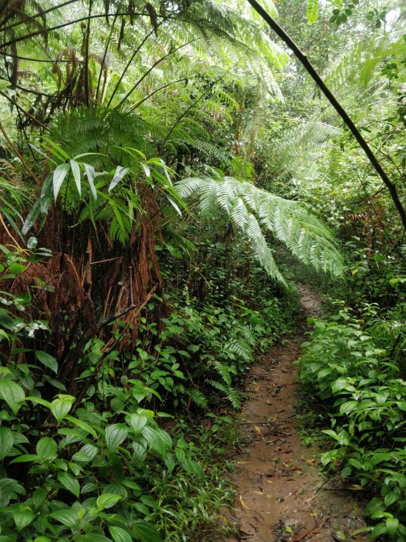 Effectivement ça glisse après la pluie, mais très agréable de parcourir le sentier sous les jamrosas.