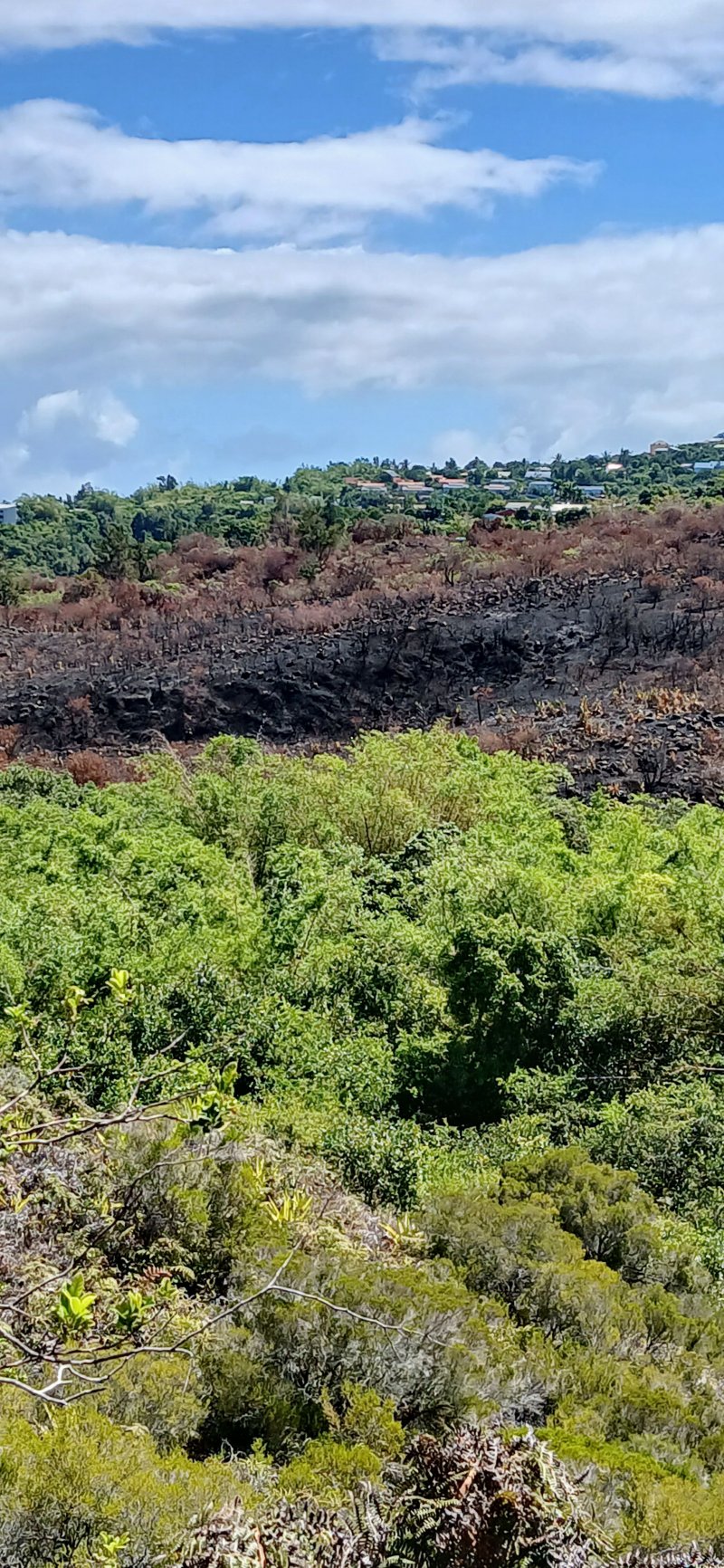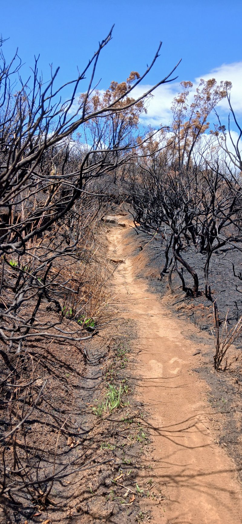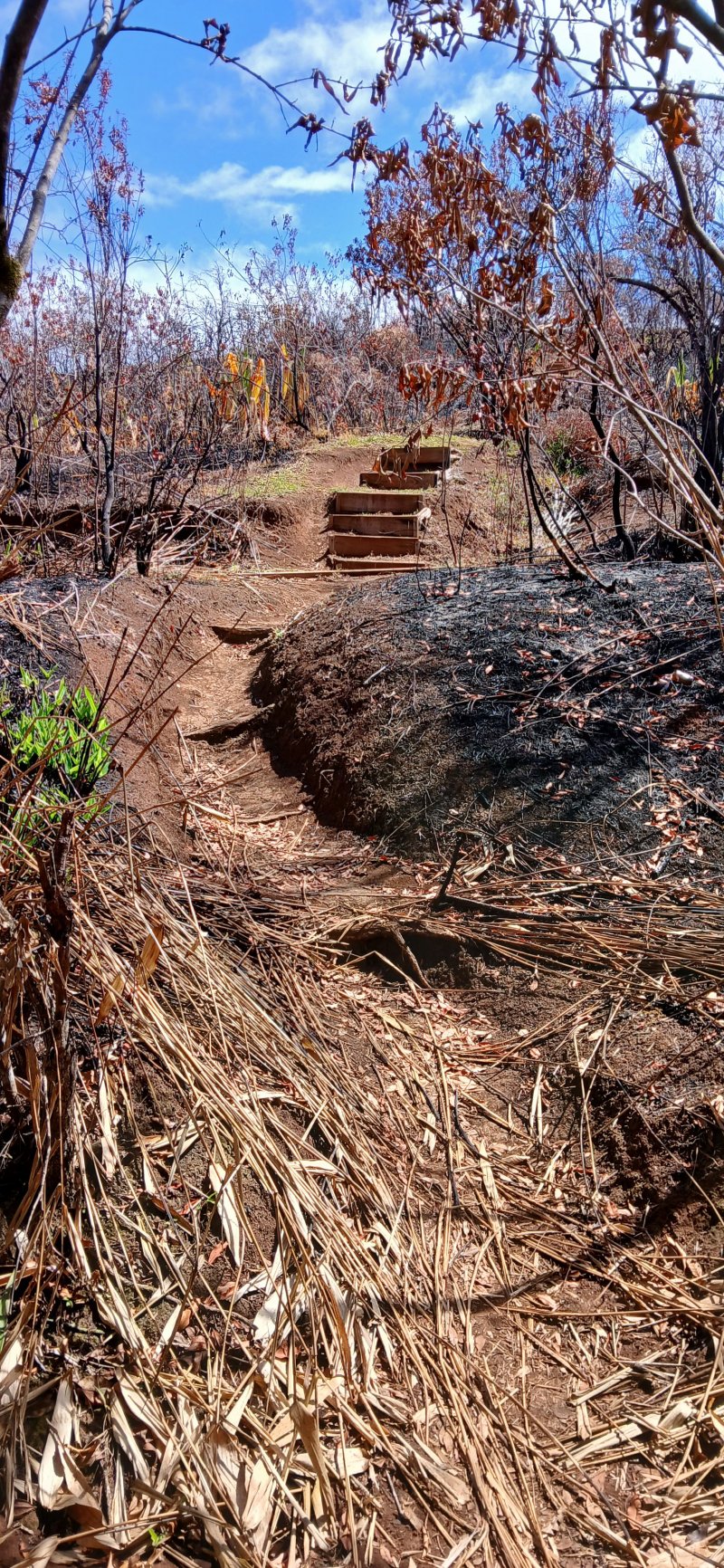Pas de chiens errants croisés. Par contre certains chemin de terre étaient glissant. Désolation devant le paysage brûlé