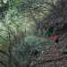 La randonnée débute au terminus du bus 37 (Arrêt Montée Sano) qui emprunte la Route de Bellevue en venant de Ste-Marie. Attention de ne pas stationner là où le bus effectue sont demi-tour. Emprunter la route étroite depuis le virage de la Racine Coco et marcher jusqu'au château d’eau sur la droite, dont la grille n’est jamais fermée à clé (Photo 1). Le sentier, large au départ, commence à plat en direction des bois qui entourent le village et la vallée de la Rivière Ste-Marie (Photo 2). Il se rétrécit et se rapproche de la Ravine du Bernica surmontée d'une passerelle rouillée. On peut encore passer par l'ouvrage vieillissant mais il est préférable d'emprunter le gué (Photo 3). On entend couler une cascade sur la gauche. Avant de poursuivre, il est conseillé de trouver le sentier en rive gauche qui se divise très vite en deux. Partir à droite sur une forte pente constituée de nombreuses marches en terre (Photo 4). Se rapprocher du petit bassin et de sa belle chute avant de remonter vers la passerelle (Photo 5). Traverser le gué sur des galets glissants avant de pénétrer dans un tunnel de végétation créé par des jamrosats bordant une ancienne piste (Photo 6). Le cheminement est très facile dans une végétation clairsemée de plantes envahissantes dont de nombreux goyaviers (Photo 7). Le sentier longe le bord de la pente qui domine la rivière, ondule en fonction du relief, traverse une nouvelle ravine qui coule en mince filet (Photo 8). On rejoint très vite le Bassin Bleu qu'on ne peut pas totalement voir depuis le sentier qui le domine d'une cinquantaine de mètres (Photo 9). On est frappé par le peu d'eau qui coule de cette haute chute. On comprendra pourquoi en arrivant au sommet de la prochaine cascade. Un minuscule sentier, difficile à discerner dans les fougères, débute près du point de vue (Photo 10). Tout le monde ne pourra pas le pratiquer en raison de multiples difficultés (Photo 11). La pente est raide et comporte quelques très hautes marches (A). Il est souvent difficile à suivre des yeux dans une végétation touffue (B). On doit, à un moment, contourner un arbre tombé au sol pour reprendre la plongée vers la rivière (C). Si on ne le contourne pas rapidement, on se retrouve sur une magnifique racine de camphrier imposant de faire demi-tour (D). La difficulté est oubliée avec l'arrivée au grand bassin (Photo 12). L'endroit est sauvage. Une minuscule cascade coule près d'une grotte en rive gauche (Photo 13). Cette grotte issue d'un ancien tunnel de lave est peu profonde (Photo 14). La cascade, quant à elle, est rarement exceptionnelle malgré sa hauteur (Photo 15). La remontée, très sportive, permet de retrouver le point de vue sur la cascade. En profiter pour voir également le panorama sur la côte et la vallée de la rivière (Photo 16). La végétation en direction du Piton Charpentier est très touffue (Photo 17). Le sentier poursuit sa balade en sous bois, très sombre parfois, en longeant la ligne de courbe et en coupant de petits ruisseaux qui laissent présager d importantes chutes d’eau en période pluvieuse. Le passage est creusé dans la falaise et les parties étroites sont équipées de mains courantes (Photo 18). Il n'y a pourtant aucun danger depuis que les goyaviers ont envahi le ravin et qu'il est impossible d'y tomber. Ce câble, parfois très long, sécurise les barres rocheuses enlevées pour faire passer la tuyauterie qu'on devine à peine au sol sous les feuilles mortes. Certaines portions d'un ancien canal apparaissent par endroits mais ne pourraient pas retenir 10 litres d'eau. On arrive enfin au début de la passerelle. Elle permettra d'atteindre la cascade qu’on aperçoit à une centaine de mètres. Le sol est constitué d'une grille recouverte de feuilles diminuant les sensations de vertige (Photo 19). Sous la passerelle, on remarque une grotte, qui, lorsqu'on s'en approche, n'est pas extraordinaire mais est aussi un lieu de prière (Photo 20). Poursuivre le long de la falaise sur une pente presque nulle (Photo 21). On arrive très vite au bassin en longeant cette muraille (Photo 22). La chute d’eau est faible en raison du captage mais le cadre très agréable (Photo 22). On peut s'approcher du bassin par le lit rocheux de la rivière à la fin de la passerelle. Il est profond mais n'encourage guère à la baignade. On remarque un petit tunnel avant d'entamer la montée. Avec une lampe, on peut y pénétrer pour étudier l'ingénieux système de récupération de l'eau (Photo 23). Presque à la fin, une fenêtre donnant sur le vide permet de voir la cascade sous un autre angle (Photo 24). Entamer ensuite la rude montée sur de hautes marches renforcées par des contre-marches en alu (Photo 25). Le câble mis ici pour protéger est surtout utile pour s'aider à escalader ce rempart. On profite de belles vues sur le bassin durant l'ascension (Photo 26). Au sommet de la cascade, la vue est encore plus impressionnante (Photo 27). On rejoint plus loin le captage reconnaissable à sa grosse grille qui empêche des galets de tomber dans le tuyau mais qui a bien souffert des assauts du dernier cyclone (Photo 28). Vu le principe de collecte de l'eau, on comprend que lorsque le niveau de la rivière est faible, les cascades sont très fines. La canalisation est prioritaire sur l'alimentation des bassins. Le sentier officiel s’arrête au captage mais la remontée de la rivière est possible sur les gros rochers assez peu dangereux. Le retour s'effectue par le même sentier.