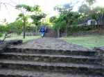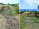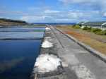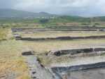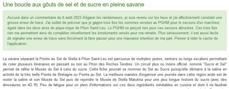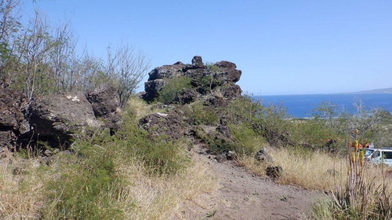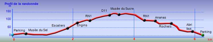 La randonnée débute ici côté sel mais peut aussi commencer dans le village, plus haut, côté sucre. Contrairement à de nombreuses zones touristiques, celle-ci n'est pas fermée de hauts grillages et on peut tout à loisir longer les bassins de recueil du sel avant de descendre visiter le petit musée. Un panneau explicatif donne quelques indications sur la région et sur le sel (Photo 1). Le musée est un petit bâtiment qui se visite rapidement, s'il est ouvert au moment de la randonnée (Photo 2). En amont, des bacs de décantation permettent de recueillir quelques quintaux de sel (Photo 3) alors que la surface originelle, recouverte de terre et d'herbe, pourrait en produire des tonnes (Photo 4). A quelques mètres de là, les vagues se fracassent sur les rochers de la Pointe de Bretagne et la visite du lieu ne prend que 10 minutes. On peut ainsi s'approcher du bassin également utilisé pour le recueil de l'eau de mer et la baignade. Plusieurs grottes, failles ou gouffres se remarquent aux vagues qui s'y engouffrent en créant de hauts geysers d'eau salée (Photo 5). Un four à chaux émerge de la savane constituée de hautes herbes jaunes. La boucle commence sur la petite route qui passe sous la RN1a, rejoint l'abri bus en bois avant d'emprunter le sentier qui part au plus près de l'abri. Ce trajet est une véritable piste bordée de hautes herbes plus ou moins jaunes en fonction de la saison. L'allée, baptisée le Chemin des Découvertes, mène à quelques engins vieillissants entourés de chocas ou aloé véra (Photo 6). La piste comporte quelques tronçons constitués de marches en pierre (Photo 7). On s'approche rapidement de la Route des Tamarins qui se franchit par un tunnel très fréquenté après avoir contourné un long réservoir de recueil des eaux pluviales (Photo 8). Longer la piste bétonnée ou les sentiers de raccourcis. La zone est un peu bruyante à cause des véhicules lancés à vive allure mais elle est bien fleurie et verdoyante pour la région (Photo 9). Une haute sculpture colorée trône dans l'aire de pique-nique (Photo 10). Flâner dans l'aire de repos puis rejoindre l'escalier qui monte en direction de la Rue du Musée (Photo 11). Partir à droite sur cette route fréquentée puis poursuivre à gauche sur le Chemin de la Diagonale pour se rapprocher du musée pour quelques heures de visite. Si l'établissement est fermé, repérer les horaires pour une prochaine fois. S'il accueille des visiteurs, visiter les vestiges de machines ou les énormes poulies et roues dentées de l'ancienne usine (Photo 12 et 13). A l'intérieur, la visite, très intéressante peut prendre deux heures (Photo 14). Repartir vers l'aire de pique-nique impossible à manquer à son balcon d'observation sur la région. Il est possible de descendre directement avant le muret situé sur la gauche. On retrouve les zones fleuries ou arborées nécessitant d'abondants arrosages (Photo 15). Des emplacements abrités attendent les pique-niqueurs qui bénéficient de belles vues sur la mer ou la saline (Photo 16). Partir à droite après le tunnel, longer la piste et emprunter le premier chemin vers la gauche en direction de la mer (Photo 17). L'ancien élevage d'autruches disparu depuis de nombreuses années est désormais remplacé par de grands champs d'ananas (Photo 18). Emprunter, plus bas, une nouvelle allée partant vers la droite. Elle est bordée de chaque côté de grosses touffes d'aloé véra (Photo 19). Rejoindre une large piste en terre qui mène à la deuxième aire de pique-nique permettant également de beaux points de vue (Photo 20). Ici, moins d'arbres qu'en amont pour procurer de l'ombre durant les repas (Photo 21). On devine les roches du piton à quelques mètres de là tout en profitant des vues sur la Baie de Saint-Paul (Photo 22). Le regard porte jusqu'au Port et on a sous les yeux la totalité de la saline de la Pointe au Sel (Photo 23). Se rapprocher du Piton des Roches Tendres par un court sentier. Contrairement à leur nom, ces roches très dures peuvent s'escalader pour s'élever un peu et profiter des panoramas sans branches d'arbres pour gêner le regard (Photo 24). Revenir sur ses pas et prendre le petit sentier qui entame la descente du retour dans les hautes herbes qui jaunissent vite dès les premières chaleurs revenues (Photo 25). Tout le piton est envahi par les oreilles de lion ou pompon soldat (Leonotis nepetifolia), ces chardons caractéristiques (Photo 26). Longer les falaises d'une petite ravine de quelques centaines de mètres prenant sa sources au Roches Tendres mais qui a réussi en quelques millénaires à creuser une profonde vallée rocheuse (Photo 27). On rejoint, toujours sans effort, la piste caillouteuse parallèle à l'océan qui fait un coude vers la droite (Photo 28). On retrouve rapidement la piste empruntée au début de la boucle et l'abri bus le long de la route. Le musée du Sel est de l'autre côté de l'ancienne route nationale menant à l'Etang Salé. Rejoindre le parking ne prend que quelques minutes. La hauteur de l'herbe peut parfois empêcher de visiter le four à chaux de la Pointe au Sel dépassant de la savane herbeuse.