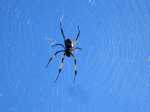 La randonnée débute à l’église du Tévelave (Photo 1) et contourne l’édifice par une petite ruelle à gauche qui passe entre les cases avant de rejoindre une piste bétonnée se terminant à une habitation et un réservoir d'eau. Longer le grillage du château d'eau par la droite sur une portion bien entretenue par le service des eaux (Photo 2). Très vite, on se retrouve dans une jungle constituée de longoses, galaberts et hautes herbes. Les rares passages font qu'on peut avancer sans trop se griffer mais une machette dans le sac peut aider longtemps après la fin des travaux d'entretien (Photo 3). On a parfois l'occasion de voir la forêt qu'on traversera dans quelques minutes en direction du Piton Deveaux (Photo 4). Un sentier également envahi part sur la gauche en direction de la Source Deveaux. Quelques rambardes permettent de se retenir quand il faut marcher dans une zone très humide où les chaussures s'enfoncent dans une gadoue grasse et malodorante (Photo 5). On s'approche d'une petite ravine boueuse venant de la gauche (Photo 6). Après le franchissement de la ravine qui peut aider au nettoyage des chaussures, le sentier entame sa montée avec un ou deux passages techniques sur des troncs couchés. Les longoses n'empêchent pas totalement de suivre le très ancien sentier qui a perdu en largeur depuis la disparition de la ferme. Les marches sont cependant bien marquées (Photo 7). Le sentier s'élève pour mieux profiter des vues sur le village et l'océan (Photo 8). La pente devient assez forte et ce sont surtout les marches creusées dans le sol qu'il faut affronter (Photo 9). Les glissades y sont inévitables sur la terre luisante, surtout s'il a plu les jours précédents. Le cheminement peut même être délicat en descente et le bâton de randonnée est recommandé. Il reste tout de même des parties touffues où le sentier reste visible, surtout s'il a été réhabilité (Photo 10). Quelques portions moussues restent d'autant agréables qu'elles ne sont pas couvertes de longoses (Photo 11). Comme les randonneurs sont très rares dans ces sous-bois, les grandes toiles d'araignées bouchent parfois le passage de leurs fils collants (Photo 12). On tombe donc inévitablement devant les bibes (Trichonephila inaurata) à l'affut dont certaines de tailles respectables (Photo 13). Plus loin, le sentier devient moussu (Photo 14). Pourtant, la mousse n'a pas recouvert le passage malgré les années d'abandon (Photo 15). Le parcours longe un rein dominant le Bras Cresson avec quelques vues sur la petite cascade de la Source Deveaux (Photo 16). La végétation est surtout constituée de branles verts et de goyaviers (Photo 17). Les bords du sentier moussu sont souvent recouverts de fougères dont certaines dépassent 4 m de hauteur. Pourtant, lorsqu'on regarde au loin on ne voit que des bois de couleurs qui recouvrent les collines (photo 19). Ce sont ces bois de couleurs qu'il faut traverser si on veut atteindre le sommet du Piton Deveaux. On ne se débarrassera jamais complètement des pestes en tout genre envahissant le sentier. Une grosse touffe de vigne marronne semble fermer le chemin près d'une petite ravine. Heureusement, quelques coups de sabre ont créé un passage qui ne restera pas des années (Photo 20). Après une grimpée d'une petite demi-heure, on parvient à un emplacement dégagé qui permet un beau panorama sur le village en partie caché par les branles. Les fougères sont de plus en plus nombreuses à travers les branles. Certains pieds sont imposants par leur taille mais ils n'empêchent pas la progression. Quelques portions de forêt sont assez touffues mais le sentier reste visible, surtout si les rubalises sont encore en place (Photo 21). Puis le sentier quitte un peu l'arête pour partir à droite le long d'un ravin profond protégé de sabres paille et de goyaviers (Photo 22). Puis ce sont les longoses qui cachent en partie le sentier sous de grands fanjans (Photo 23). On devine ça et là des traces de fouilles de cochons sauvages qui laissent leurs empreintes dans le sol boueux. Le sentier repart vers le rein dans les derniers bois de couleurs (Photo 24). On termine sur un sentier bien marqué dans les branles verts où les envahissantes ont presque disparu (Photo 25). La pente est faible et le sol très propre pour une marche agréable (Photo 26). On se retrouve bientôt à l’emplacement de la Ferme Deveaux. Seule une petite clairière marque symboliquement son emplacement ou celui d'une parcelle de l'époque (Photo 27). On a beau chercher, rien n'apparaît, ni les murets habituellement trouvés près d'anciens îlets, ni manguiers ou autres arbres fruitiers. Les goyaviers l'entourent et peuvent être très fournis ; ne pas oublier un sac car de moins en moins d'habitants du Tévelave osent affronter boue, glissades et longoses pour récolter le fruit rouge (Photo 22). Le tec tec habitant la zone, très curieux, est sensible aux miettes qui lui sont lancées même s'il est peu habitué à ce genre de mendicité (Photo 28) ! Les autres directions permettant de grimper vers le Piton Deveaux pour aller à la rencontre d'une ravine souterraine ou de rentrer en partant vers le sentier des Ouvriers pour un retour tout en descente après avoir traversé la belle forêt de couleurs et ses innombrables ravines au fond moussu.