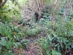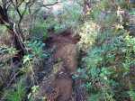 Chemin pour la source très encombré, avec qq petites arbres en travers (conséquence des pluies récentes ?)