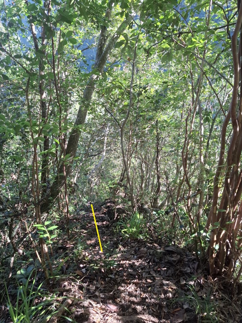 Certains passages sont engagés. Je conseille de ne pas monter à bloc pour garder suffisamment de lucidité sur les endroits délicats. Ça serait dommage de se mettre en danger bêtement. J’ai coupé le sentier marron, j’étais seul. Descente du Zèbre.