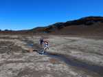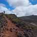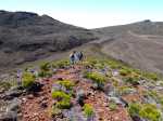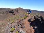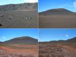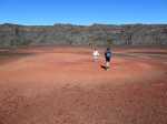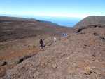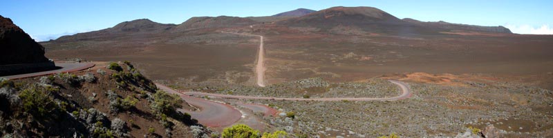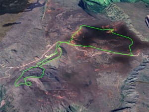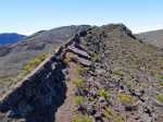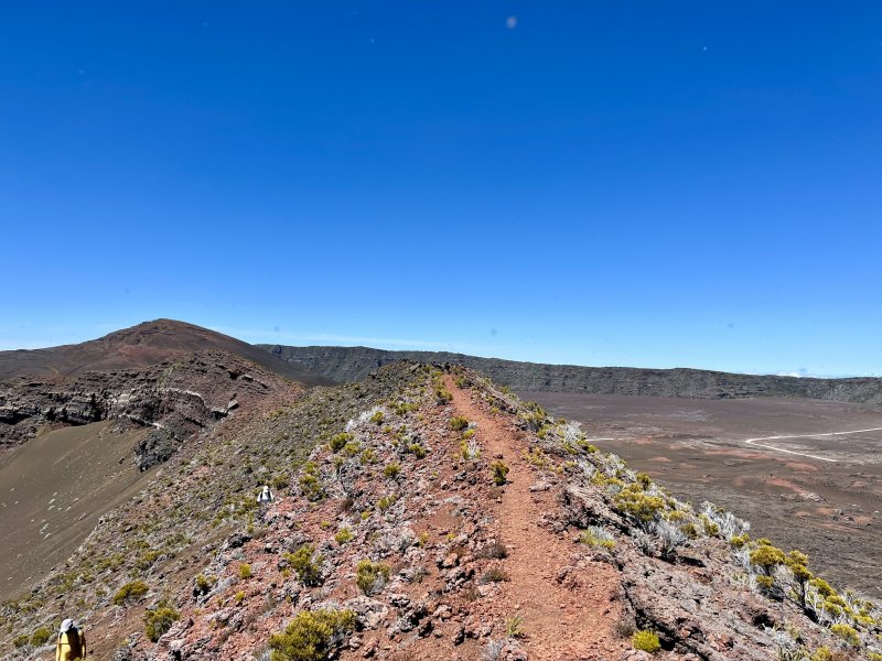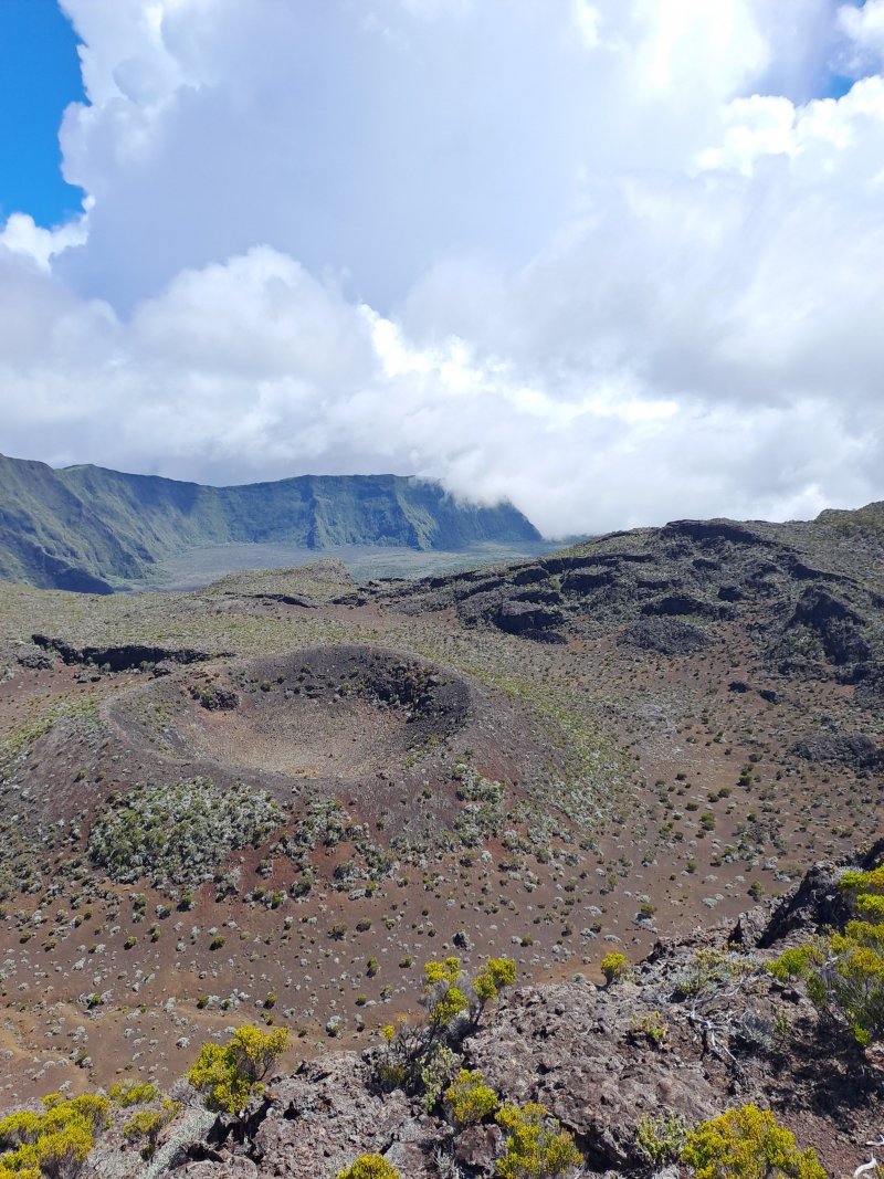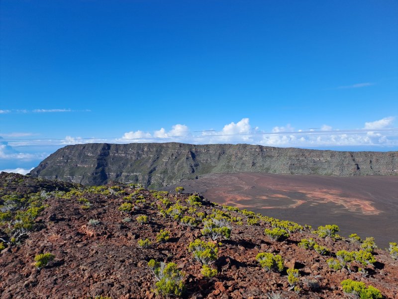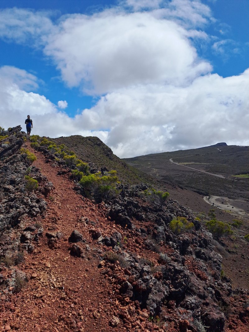 La randonnée débute au pied du rempart du Pas des Sables après avoir emprunté les six lacets de bitume rouge. La piste, toujours infestée de nids de poules, est ainsi évitée en véhicule. A partir de ce point, on peut aller n'importe où sur la Plaine des Sables et se balader au gré des paysages rencontrés en marchant sur un sol sableux totalement plat (Photo 1). Les aspérités sont rares ; ce sont des restes de roches dépassant du sol. Ne pas manquer cette particularité des zones aux couleurs chaudes situées un peu partout sur la plaine. Certaines ont une forme presque circulaire (Photo 2). Après une flânerie sur ce lieu unique au monde, viser le sud du Piton Chisny en laissant le rempart du Morne Langevin (Photo 3). Rejoindre le sentier de Cap Blanc, le traverser et viser un sentier qu'on devine sur le flanc du Piton Chisny. Il n'est pas balisé mais bien marqué. La végétation y est quasi inexistante et l'on rencontre souvent de belles bombes volcaniques expulsées lors de l'éruption strombolienne du Chisny datant d'un millénaire (Photo 5). La pente n'est pas trop forte. Le sentier devient plus discret lorsqu'il passe sur de la lave solidifiée comportant de multiples fissures qui doivent se contourner (Photo 6). Le sommet se rejoint assez facilement après ces 150 m d'ascension. Quelques branles verts tentent de survivre dans des conditions difficiles (Photo 7). Les panoramas sur la Plaine des Sables valent ce court effort pour les admirer. On voit également très bien le Piton de La Fournaise qui apparaît à l'horizon derrière les cratères Aubert de la Rüe (Photo 8). Plusieurs sentiers permettent de rejoindre la Route Forestière du Volcan aperçue depuis le sommet. Entamer la descente glissante et sableuse sur un de ces itinéraires créés par les multiples passages (Photo 9). Traverser la route pour rejoindre les Gendarmes, ces sculptures de lave naturelle qui émergent de la Plaine des Sables au plus près de la piste. Traverser en quelques minutes la courte distance qui sépare du Demi-Piton en zigzagant entre roches et végétation. Le sentier, peu marqué en raison de la roche, n'est pas très large mais se trouve facilement sur l'arête de cet original piton coupé en deux dans le sens de la longueur. La montée est rapide pour s'éloigner du Chisny qui diminue à vue d'œil (Photo 10). Elle est beaucoup plus aisée et le cheminement sur la crête est facilité par l'étroit sentier créé par les marcheurs (Photo 11). Ne pas marcher trop vite pour profiter des panoramas exceptionnels de tous côtés en direction de La Fournaise, du Piton Haüy ou de la Plaine des Sables (Photo 12). Le trajet ne comporte pas d'à-pics ou de zones vertigineuses même si de larges plaques de lave dépassent du sommet (Photo 13). Débuter la descente en direction du Col Lacroix et de la Griffe du Diable qu'on devine déjà depuis le sommet (Photo 14). La Fournaise dépasse à l'horizon et l'on devine le cours de la Ravine du Piton Haüy qu'on arpentera en fin de boucle (Photo 15). On domine enfin de plus près cette Griffe du Diable si caractéristique du pied du Piton Haüy. Avec de l'imagination, on peut effectivement voir une grosse patte griffue lacérer la lave et y laisser de profondes trainées où la végétation s'est installée (Photo 16). La dernière descente, comme au Chisny, est glissante et nécessite un peu d'attention (Photo 17). Au GRR2, partir à gauche et trouver quelques sentes débutant à droite, créées par les curieux désireux d'admirer le cratère sommital. Le début est assez facile dans une végétation ne gênant pas la marche. La pente est plus raide que sur les autres pitons mais la montée s'effectue sans danger si l'on prend soin de contourner un peu les parties molles pour rechercher des portions plus rocheuses et en évitant les fissures. En se retournant, on voit bien la pente que l'on vient de descendre du Demi-Piton (Photo 18). Comme le Piton Haüy est en bordure de la Plaine, on a sous les yeux la presque totalité de cette vaste étendue recouverte de gratons, de lapillis et sables colorés. Le sommet comporte plusieurs failles profondes qu'il faut éviter et un sol facile à fouler sans blesser les plantes qui le recouvrent. La végétation, à cette altitude est rabougrie, facilitant la marche hors sentier. Quelques bombes volcaniques, comme au Chisny, vieillissent et se fissurent lentement (Photo 19). On remarque très vite cette petite merveille au fond du grand cratère (Photo 20). Un petit cratère s'est formé au milieu du plus grand et semble accessible assez facilement. On peut descendre à plusieurs endroits sans danger mais il faut tout de même se méfier de possibles glissades sur les gratons et parties sableuses. La montée au petit cratère, le tour à pied (Photo 21) ou la descente au cœur ne comportent aucune difficulté (Photo 22). Tout autour, les roches déchiquetées sont sauvages et peuvent abriter de petites grottes naturelles (Photo 23). Pour poursuivre la boucle, il est possible de remonter par le même itinéraire ou partir de l'autre côté. Le spectacle sur le Fond de la Rivière de l'Est est déjà très beau et c'est en marchant vers l'est qu'on bénéficiera de magnifiques panoramas sur le Gîte du Volcan, la Forêt Départementale des Plaines du Volcan et le Cassé de la Rivière de l'Est. La descente vers la plaine et la Ravine du Piton Haüy s'effectue assez facilement à travers les branles verts et les roches parfois acérées (Photo 24). Une fois arrivé au sentier officiel, prendre à l'envie la piste, effectuer du hors sentier ou longer le fond de la Ravine du Piton Haüy pour profiter de belles sculptures naturelles laissées par l'eau en période de pluie (Photo 25). On longe le Demi-Piton côté cratère pour se rapprocher du point de départ en traversant de larges parties plates où seules quelques herbes réussissent à pousser (Photo 26). Après la pluie, la ravine comporte quelques 
