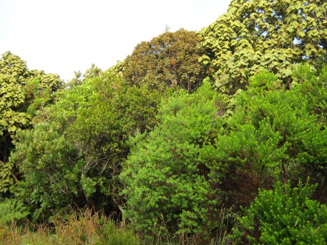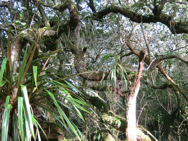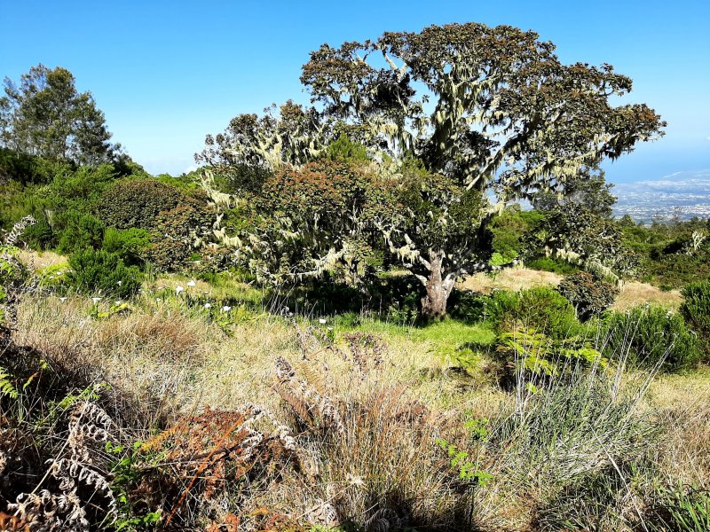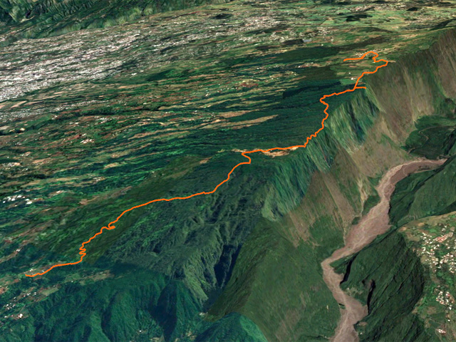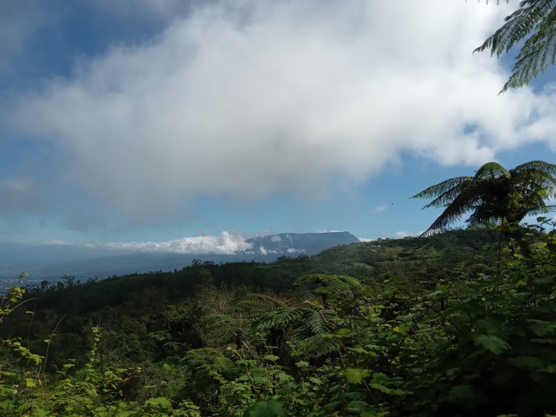 Voici une longue montée partant des hauts de Petite Île pour rejoindre le village de Notre Dame de la Paix. Ce circuit demande deux véhicules si on ne désire pas effectuer l'aller-retour. Il y a moins de 10 ans, un sentier partait du Relais de Petite Île et rejoignait Notre Dame de la Paix en traversant une belle forêt de bois de couleurs. Les pestes végétales, déjà nombreuses à l'époque, ont vite envahi le sous-bois, rendant impossible le circuit. C'est dommage car cette longue sortie permettait de mieux connaître les hauts boisés de Petite Île. Un contournement est utilisé depuis cette fermeture forcée et permet d'effectuer à peu près le même nombre de kilomètres en suivant quelques champs, traversant une belle forêt primaire, des prairies et en contemplant le fond de la Rivière des Remparts ou le Plateau de Grand Coude avant d'arriver au Sentier Botanique de Notre Dame de la paix. La sortie présente aussi l'avantage de rencontrer à peu près toute la végétation présente sur l'île. Quelques portions de route pour rallier Notre Dame de la Paix à partir de la fin la fin de la piste de la Forêt des Hauts de Montvert, viennent tout de même ralentir l'enthousiasme des marcheurs sans pourtant ôter celui des amoureux de la nature.