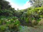 Faite hier jusqu'au point de vue du sentier botanique. Le chemin est entièrement dégagé actuellement, magnifique forêt primaire, et superbe vue sur la rivière des remparts. Le champ d'arums est en fleurs : magnifique !