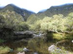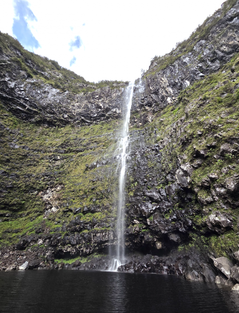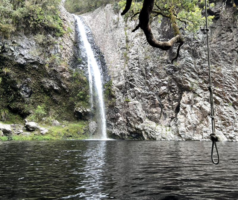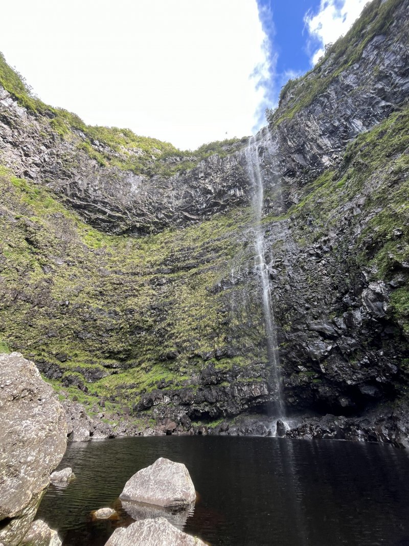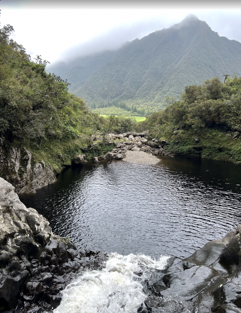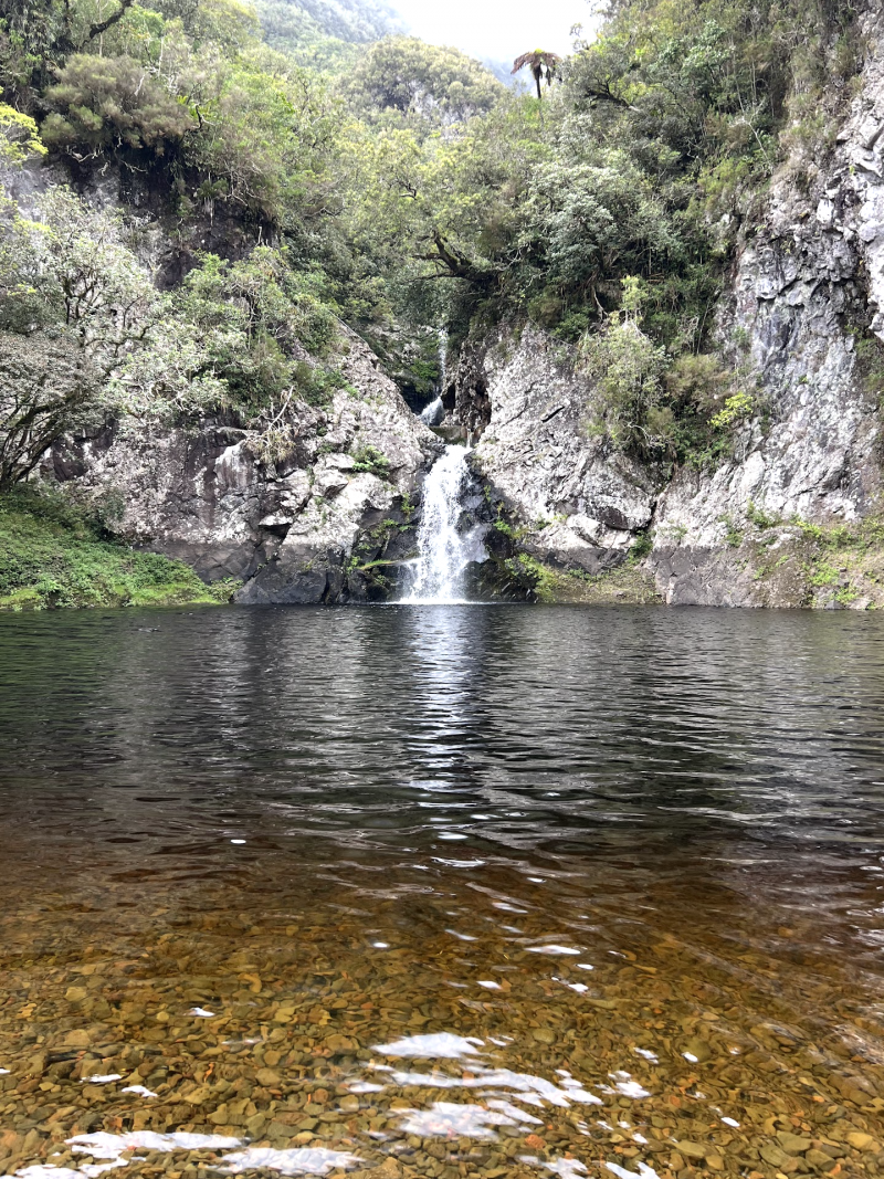 Remontée du Bras noir le 3 janvier 2016 après le fort épisode pluvieux du réveillon. Le sentier est bon mais la rivière est forte. Belle cascade au fond du cirque.