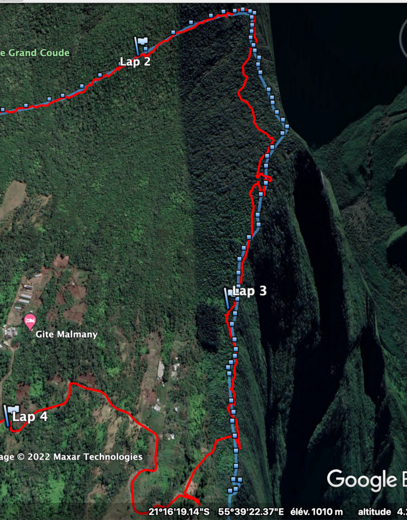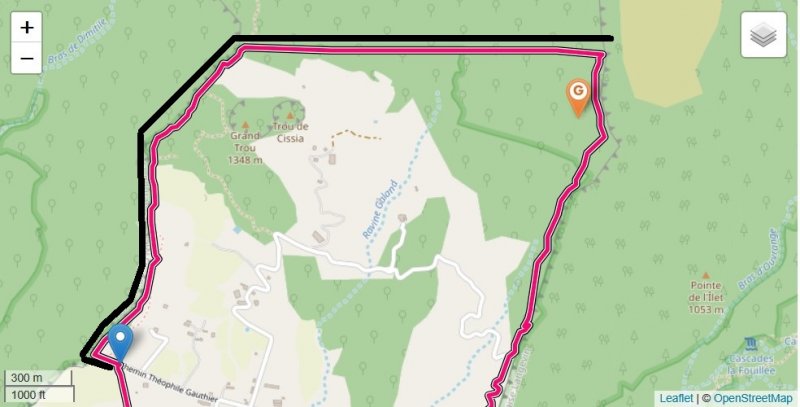 Je confirme : faite aujourd'hui, j'ai dû improviser une trace pour rentrer. Très dangereux, pas du tout balisé et complètement envahi par la nature qui a repris ses droits. Sauf pour les personnes désirant se perdre pendant 4 heures en pleine jungle, je déconseille fortement, d'autant plus qu'il n'y a pas de paysages à voir étant en pleine forêt.