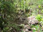 La randonnée débute à la balance de Langevin où l'on n'a que l'embarras du choix pour se garer hors période de coupe. On longe tout d'abord la rivière dans une zone habitée où quelques restaurants ou kiosques font le plein le week-end. La rivière est très fréquentée en fin de semaine et cela se comprend quand on voit tous les bassins d'eau peu profonde qui plaisent tant aux enfants (Photo 1). On poursuit jusqu'à la petite unité hydroélectrique qui puise son eau 2 km plus haut à la Passerelle. L'eau, récupérée dans un bassin de ce petit village est acheminée vers la Petite Crête par un tunnel creusé dans la falaise plonge de 200 mètres afin d'obtenir la pression suffisante pour entraîner les turbines. On ne peut manquer cette canalisation entourée d'escaliers métalliques qui grimpent le long de la falaise (Photo 2). Plus haut, dans le premier virage, un raccourci permet d'éviter le long lacet après le Pont Babet en passant sur la grotte dédiée à la prière. Avant l'Îlet à Diable, s'il y a beaucoup d'eau dans la Rivière Langevin, filer à droite sous les letchis pour voir la cascade qui pénètre sous la terre au Bassin des Hirondelles. Suite à un énorme éboulis, un nouvel itinéraire impose de passer dans les villages de la Passerelle et du Grand Défriché avant de retrouver un pont métallique installé sur la rivière Langevin. A la fin du Grand Défriché, la route monte en lacets tellement pentus qu'il est presque impossible de passer la seconde lorsqu'on conduit. Une belle manière d'éviter ces lacets bétonnés consiste à filer tout droit vers la très belle Cascade du Trou Noir et de poursuivre sur le sentier de gauche pour retrouver la route, plus haut. Hélas, le sentier n'est pas toujours entretenu. On traverse alors une longue portion cultivée, principalement d'ananas sous les letchis et les bananiers jusqu'à Fond de Galet (Photo 3). Si on a déjà vu la résurgence de la magnifique Cascade Langevin (Photo 4), obliquer à gauche, avant l'élevage de truites, à un curieux escalier qui ne mène nulle part pour rejoindre le Chemin Mallet par un sentier abrupt. Suivre cette petite route jusqu'à Grand Galet puis traverser totalement le village par la rue principale. Une fois arrivé au bout du village et ses champs d'ananas, la piste se transforme en beau sentier qui franchit la Grande Ravine à sec peu après un oratoire entouré de fleurs. Le paysage devient très vite plus sauvage et de nombreuses merveilles sont cachées dans ses sous-bois. Après la petite canalisation transportant l'eau potable (Photo 6) et la Source Canal on peut admirer le pont naturel et les cascades La Fouillée si le niveau d'eau le permet. Un point de vue a été installé afin de mieux profiter du spectacle d'une des cascades de la zone (Photo 7). Franchir le Bras des Chevrettes puis, 500 mètres plus loin, le gué sur la Grande Ravine en évitant d'aller à droite vers Caverne Rouge ou les sources de Cap Blanc en suivant la Ravine des Sept Bras. Remarquer au passage la différence de niveau de l'eau : au dernier gué, on est heureux d'avoir des cailloux pour poser les pieds alors qu'au premier rencontré en aval, pas une goutte d'eau ne coule. L'eau a disparu entre temps dans les galets et les tunnels souterrains pour sortir en force à la Cascade Langevin. Il faut un bon cyclone pour voir de l'eau surgir du haut de la chute. La montée débute vraiment à partir de ce gué. Le sentier traverse une zone de hautes fleurs très touffues avant de passer devant un abri en assez bon état. On marche sous les filaos sur une pente assez facile (Photo 8). Les pentes se font de plus en plus raides dans les parages de Grand Pays en traversant de magnifiques forêts de bois de couleurs (Photo 9). A 1200 mètres, un panneau de l'ONF encourage les marcheurs à qui il reste autant à monter pour terminer le parcours (Photo 10). On trouve enfin une petite descente qui est trop courte pour reposer les jambes, suivie d'une partie plate dans les filaos (Photo 11). On arrive à la Ravine de Grand Sable après avoir traversé quelques goyaviers dans les bois de couleurs de Grand Pays. On ne quittera plus guère la Ravine de Grand Sable avant la fin des difficultés. Les paysages sont sauvages et on devine bien les efforts qui restent à faire avant de trouver le plat. Sur la droite, la pente est importante en direction du Piton du Rond de Langevin (Photo 12). A gauche, c'est le Morne Langevin qui parait très haut vu d'ici (Photo 13). L'apothéose est à venir avec l'escalade de la pente qui sépare Grand Pays de la Plaine des Sables. Les lacets y sont abrupts, courts et nombreux ; on n'en voit jamais la fin. Le sentier est étroit mais impossible à perdre de vue (Photo 14). Certains éboulis ont effleuré le sentier rendant vertigineuses certaines portions qui l'étaient déjà. Dans les trouées de la végétation on aperçoit la fin de la montée au pied du morne (Photo 15). En se retournant, c'est toute la vallée de la Ravine de Grand Sable et de la Rivière Langevin qu'on a sous les yeux (Photo 16). A la fin de la longue série de lacets, c'est le fond de la ravine rocheuse de Grand Sable qu'il faut suivre en évitant les glissades si le sol est humide. Moins de végétation dans cette zone minérale présentant grottes, arches, fissures, larges plaques de basalte et fond de rivière lisse (Photo 18). A partir de l'altitude 2000, il reste encore 200 mètres à passer dans la terre, les scories, gravillons, roches et gratons en fin de montée (Photo 19). Plus on monte et plus le paysage se dégage, donnant une très bonne idée du parcours déjà effectué depuis la mer. On s'approche enfin de cette énorme coulée refroidie figée à la fin de la Plaine des Sables (Photo 20). C'en est enfin fini de la montée mais pas du parcours car il reste encore près de 7 km à avaler (Photo 21). Mais le sentier, tout d'abord désagréable dans les gratons de la coulée venue ici se 
