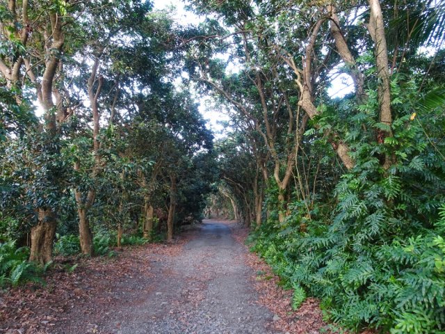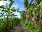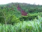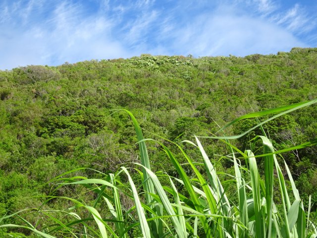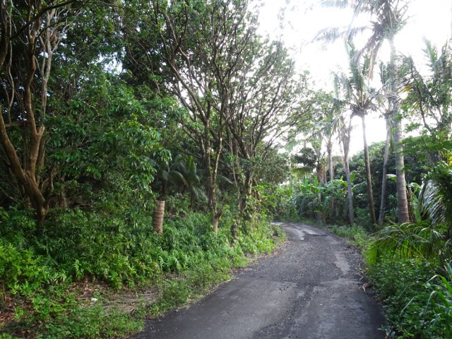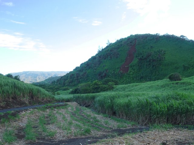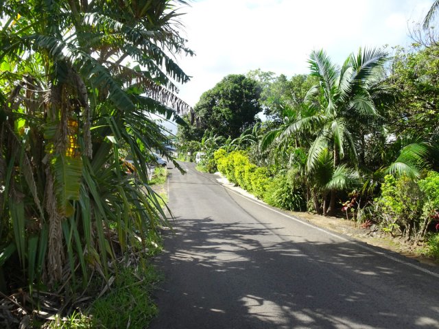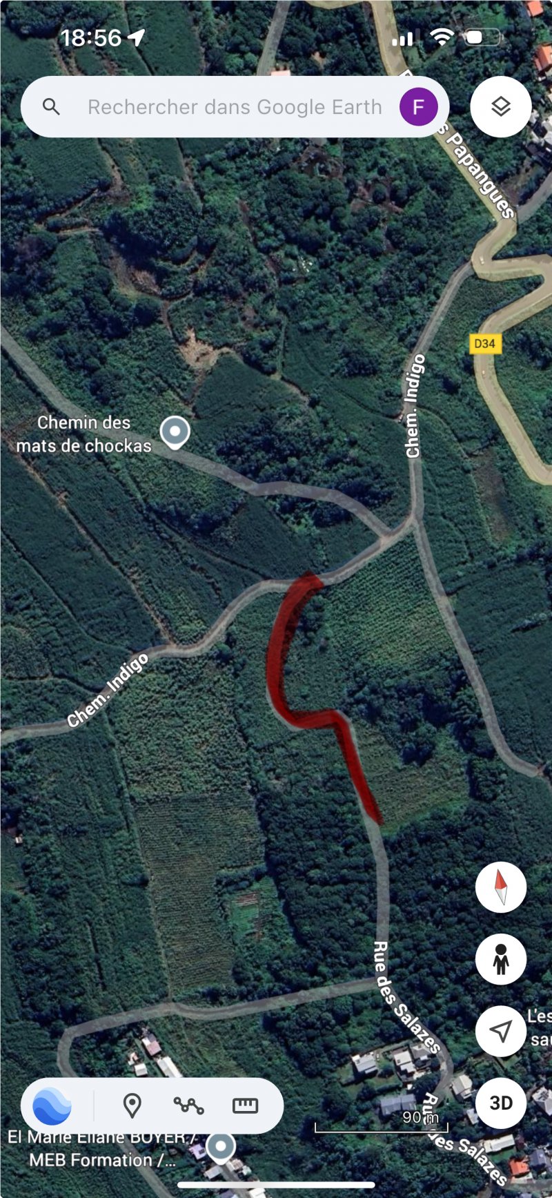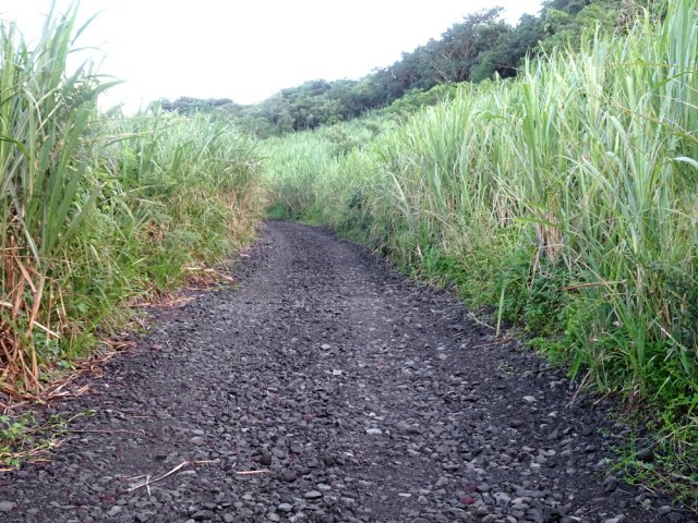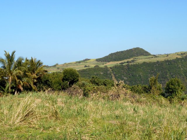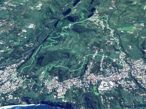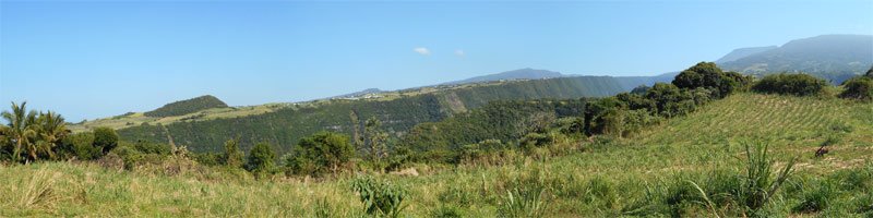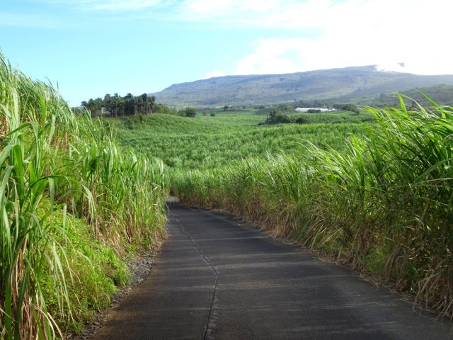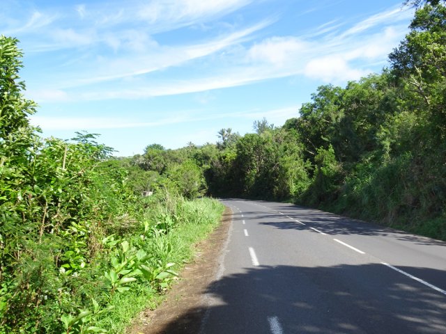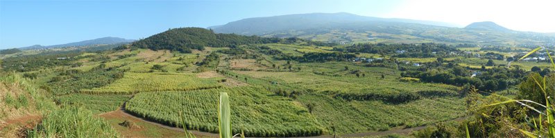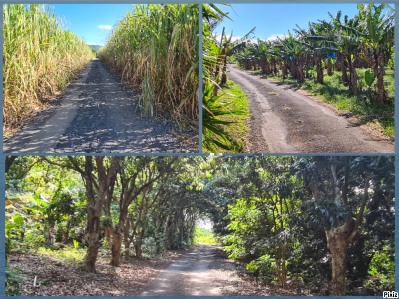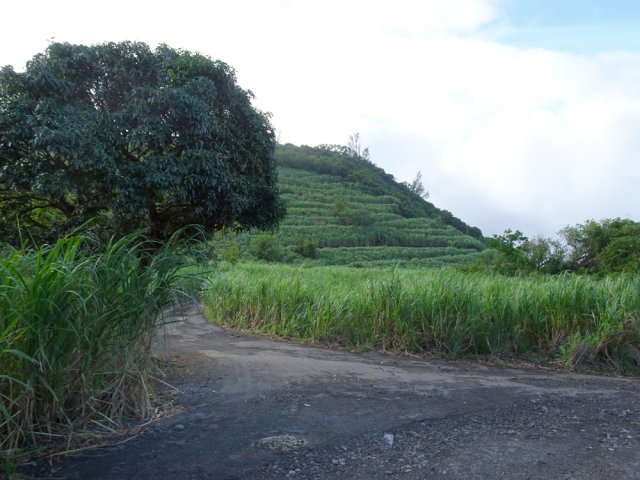 La randonnée débute à Langevin près de la chapelle située au début du Chemin Terrain Galet. Une autre chapelle rouge vif, dédiée à St-Expedit, jouxte le petit édifice (Photo 1). Partir à droite à la chapelle et entamer une montée de 300m jusqu'à Parc à Mouton. La pente est douce sur ces 5 km de montée et il est possible de presser le pas pour les plus rapides. Les cannes sont omniprésentes tout au long du parcours. Après le premier lacet, on se retrouve en vue du Piton Langevin (ou Piton Lambert) dominant les champs de canne (Photo 2). Le dernier cyclone passé en janvier 2024 a laissé quelques souvenirs au piton qui a perdu un peu de sa verdure dans un gros éboulis (Photo 3). A partir du piton, la route perd petit à petit son macadam. Elle est désormais transformée en chemin caillouteux où seuls quelques 4x4 passent avec les engins agricoles (Photo 4). La randonnée s'effectue donc dans la sérénité et le calme. La différence est grande entre la petite route de l'époque et le chemin où ne subsistent que quelques plaques de goudron (Photo 5). Délaisser le Chemin Magnolias partant sur la droite et servant aux précédents circuits désormais encombrés de végétation. Dépasser le gros manguier et continuer la montée vers Parc à Mouton (Photo 6). Après plusieurs lacets entre cannes et champs parfois à l'abandon, on parvient à des vergers (Photo 7). Le chemin est toujours en aussi mauvais état à travers longanis et litchis (Photo 8). La montée est presque terminée. Le goudron refait quelques timides apparitions au milieu des hautes herbes (Photo 9). On domine la vallée de la Rivière Langevin sur la gauche. Au loin, le Grand Bénare et le Morne Langevin occupent l'horizon (Photo 10). De l'autre côté de la vallée, le Piton de la Mare dépasse lui aussi des champs de canne (Photo 11). Le terrain devient plus plat à l'approche du village verdoyant (Photo 12). On débute même une faible descente pour pénétrer dans Parc à Mouton situé à 320 m (Photo 13). Traverser complètement le village calme et fleuri. Poursuivre jusqu'à la D34 et partir à gauche pour 200 m dans les cannes (Photo 14). Juste avant le premier virage à gauche, emprunter le Chemin des Immortels qui passe entre des habitations clairsemées. Plus bas, au lieu de rejoindre la D34, poursuivre sur le chemin filant tout droit. La belle et large piste se transforme plus bas en sentier comportant une courte portion herbeuse (Photo 15). Le reste est agréable le long des plantations de palmistes ou dans les goyaviers (Photo 16). On retrouve la rue avec ses habitations le plus souvent cachées par la verdure (Photo 17). A la fin de la rue, continuer sur la Rue des Foulards puis sur la Rue des Crotons qui comportent quelques zones de cultures (Photo 18). Terminer par la Rue des Rosiers qui rejoint la D34. Partir à droite en longeant cette route et poursuivre tout droit au premier lacet en empruntant la Rue Café. Peu de circulation sur cette petite route agréable offrant de beaux points de vue sur le Piton Lambert (Photo 21). Emprunter ensuite le Chemin Magnolia puis le Chemin des Mandarines qui descend en lacets en direction de la mer. On longe quelques champs d'ananas, des bananeraies, sur une descente faible et reposante (Photo 22). Cette route étroite doit être très agréable à parcourir à vélo (Photo 23). On domine bientôt le village de Vincendo dominé lui-même par son petit piton de 142 m(Photo 24). La route se rapproche au plus près du Piton Lambert qui comporte une grosse touffe de lataniers (Photo 25). On se rapproche ainsi de la RN2 qu'on devine au bruit des voitures tout en profitant des vues sur l'océan (Photo 26). La dernière partie, difficilement évitable même en poursuivant vers le littoral change vraiment des 10 km déjà parcourus. La circulation y est importante toute la journée mais on peut marcher sur l'accotement sans danger (Photo 27). 800 mètres plus loin, emprunter la Rue Voltaire qui mène directement à la chapelle sans avoir à marcher jusqu'au rond-point du Chemin Terrain Galet.