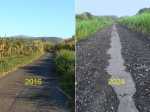 A la sortie de la première fiche en 2013, on marchait un peu sur route et beaucoup sur pistes et chemins entretenus par les agriculteurs. En 2016, la fermeture de certains d'entre eux avait remodelé la trace en rajoutant un peu de goudron. Cette dernière, au grand regret de certains randonneurs, comporte une majorité de routes, rues et ruelles qui conviendront très bien aux traillers dans le cadre d'un entraînement de 10 km. On bénéficie toujours de superbes panoramas sur le Morne Langevin ou l'océan. Une nouvelle occasion de traverser des villages des hauts pour aller à la rencontre des habitants avec qui il est très facile d'engager une conversation. Le Chemin Terrain Galet reliant Langevin à Parc à Mouton a subi d'importantes modifications. Totalement goudronné depuis des années entre les deux villages, il a été creusé pour le passage d'une canalisation. Les tranchées rebouchées, l'entreprise à refait une fine couche de goudron aussitôt emportée par les pluies. C'est donc sur un chemin où plus personne ne roule que l'on atteint Parc à Mouton à travers les cannes à sucre. En revanche, on est certain de rencontrer des marcheurs des villages alentour.