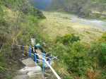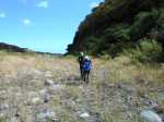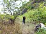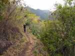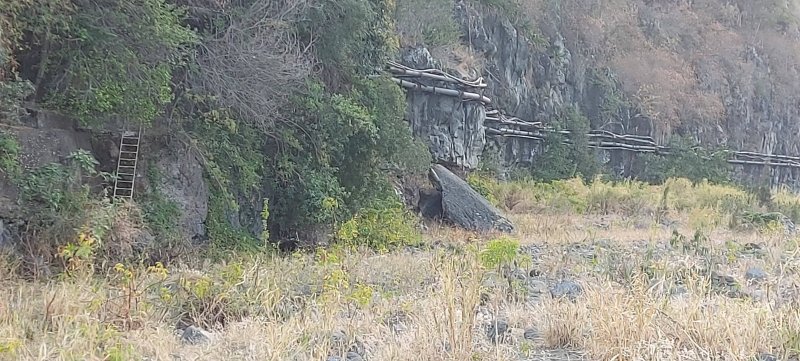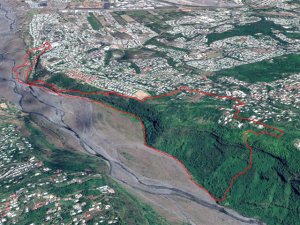 La randonnée débute au parking de l'église de la Rivière des Galets et rejoint la rive de la rivière pour emprunter la piste ou le sentier qui longe le cours d'eau en direction de Mafate. Passer le parking des taxis puis marcher jusqu'au premier gué. Le franchir et partir sur la gauche pour longer la rivière des Galets (Photo 1). Au premier coude du cours d'eau vers la droite, franchir à nouveau par un gué sommaire (Photo 2). Marcher à travers les galets en longeant le rempart au plus près. On parvient à une échelle en bordure de falaise qui semble rejoindre de multiples petits canaux de transport de l'eau ; c'est le départ d'un autre parcours vers le sentier de Bord (Photo 3). On en croisera plus loin un autre remontant le rempart. De très vieilles canalisations côtoient des plus modernes. Elles sont toutes fixées à la muraille, assez haut pour éviter les crues (Photo 4). La marche n'est pas des plus agréables sur ces milliers de cailloux. Les herbes prennent possession du sol jusqu'au prochain cyclone (Photo 5). Après 15 minutes de marche, on aperçoit le départ du sentier Malidé à l'horizon, repéré à son arbre caractéristique en début de montée (Photo 6). A mi-chemin, on devine au loin un talus et un plateau couvert de végétation (Photo 7). C'est là que passe l'ancien sentier qui reliait Malidé à la Rivière des Galets. Une fois remonté le talus, on se retrouve au milieu d'une savane à suivre ce sentier moyennement fréquenté mais très visible dans les herbes (Photo 8). Si on le suit facilement par moments (Photo 9), à d'autres il faut le chercher des yeux (Photo 10). Le paysage alterne portions de galets, de hautes herbes et de brousse en s'approchant du rempart. C'est tout naturellement qu'on parvient à une avancée rocheuse surmontée d'un tamarin. Repérer sur la gauche le départ du sentier qui escalade les premiers mètres terreux (Photo 11). Plusieurs tuyauteries sont fixées à la roche et une courte échelle permet de franchir la haute marche représentée par un rocher (Photo 12). Il faut avoir l'œil pour repérer les vestiges de l'Îlet Malidé à travers une végétation luxuriante de lianes papillon et de chocas qui a envahi le seul endroit plat de la région (Photo 13). L'ascension peut débuter. La description en est facile : le sentier, très correctement remis en état, monte fortement et constamment sur un énorme pierrier heureusement assez stable. Les lianes papillon envahissent tout, du départ jusqu'au sommet (Photo 15). Elles créent par endroits de véritables bouchons de branches inextricables (Photo 16). Les roches sont tellement hautes par endroits que les mains s'avèrent souvent nécessaires (Photo 17). Les points de vue sont rares sur la Rivière des Galets ou le rempart vers Sans Souci (Photo 19). On parvient plus haut à une barre rocheuse plus verticale que ce qui vient d'être grimpé. Le passage est presque vertical mais il se passe aisément si on prend soin d'assurer les prises (Photo 20). A partir de cette barre, le sentier passe parfois en corniche étroite demandant plus d'attention. On peut profiter de plus vastes panoramas sur la rivière des Galets mais il faut s'arrêter pour les observer car le sentier ne dépasse pas la largeur de la chaussure (Photo 21). Cette corniche est suivie de plusieurs autres portions abruptes qui se franchissent à quatre pattes. On parvient enfin au bord du rempart bordé de propriétés privées envahies de chocas (Photo 22). Prendre le sentier qui oblique sur la droite et rejoint le sentier de bord en direction de Dos d'Ane. Prendre aussitôt à gauche et entamer la descente vers la Rivière des Galets sur le sentier bordé de bambous (Photo 23). A la fin de ce premier raccourci, longer le Chemin Bordier jusqu'au nouveau sentier marqué par un petit panneau. Suivre le sentier de Bord qui souffre de plus en plus des constructions en cours ou à venir. Les engins ont parfois mis à mal le passage mais comme le terrain est en descente et que l'on veut rejoindre la Rivière des Galets, profiter des paysages et des vues plongeantes sur la rivière pour se diriger. De chantiers en sentiers, on parvient au stade qu'il faut longer par la gauche. Un premier sentier en face du stade rejoint à pic la rivière des Galets. Le deuxième, un peu plus loin, descend plus calmement vers l'oratoire qu'on atteint par des escaliers (Photo 24). Visiter ou non ce lieu de culte qui offre de beaux points de vue et poursuivre en direction du village par un sentier de bonne qualité (Photo 25). Il comporte quelques dents de scie et des portions abruptes et glissantes (Photo 26). Il frôle au plus près le poteau en pierre qui soutenait les fils au-dessus de la rivière (Photo 27). On remarque d'ailleurs le même, en face, en direction de Sans Souci. Après une dernière forte pente et un croisement de sentier, il se termine aux citernes après avoir longé une ravine profonde surgissant d'un tunnel, sans doute le vestige des canaux qui transportaient l'eau au siècle dernier (Photo 28). Le sentier prend fin aux citernes entourées d'un grillage et l'église se rejoint en passant entre les habitations de la route de Mafate et près d'une zone d'entraînement canin. L'église est située en face de l'usine d'embouteillage, fin de la courte boucle.