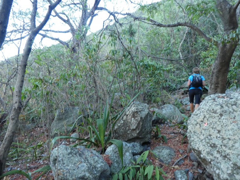 On peut également rejoindre le départ du sentier Malidé en marchant sur la piste en direction de Deux Bras puis en bifurquant lorsque l'on aperçoit le rocher surmonté de son arbre. Le terrain à traverser risque un peu de griffer bras et jambes.