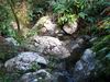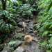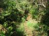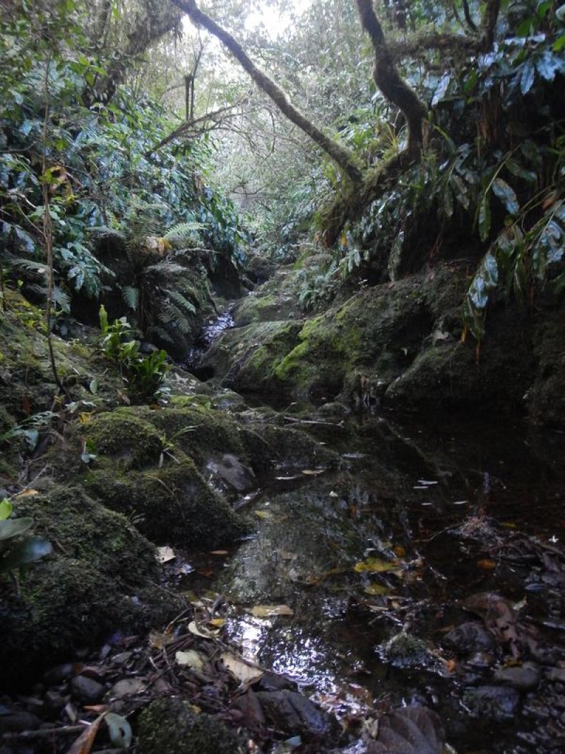 Le sentier commence au départ du sentier des Ouvriers car la balade seule dans les longoses des sources serait trop courte. On profite au début des explications sur la vie des ouvriers sur des pancartes qui se salissent vite ou se couvrent de mousses. Après une partie ombragée sous le couvert de la végétation, on utilise un sentier de bonne qualité constitué de terre et de quelques marches. Les cryptomerias annoncent l'arrivée proche de la route bordée de plusieurs aires de pique-nique. Il faut marcher une petite centaine de mètres sur la route en direction du Maïdo pour trouver le sentier des sources sur la droite de la route juste après le virage vers la gauche (photo 3). Il est étroit et bien marqué puis monte rapidement mais sans effort sur les flancs du Piton Monty, dans les bois de couleurs envahis de fougères et longoses. Très vite on rencontre une première prise d'eau puis une seconde. Le sentier se rétrécit un peu, il est bordé de fougères plus nombreuses et bien sûr de goyaviers. On entend ci et là le bruit de petites chutes d'eau (photo 5) qui sont chaque fois reliées par d'étroits sentiers. C'est le royaume humide des orchidées dont on rencontre plusieurs spécimens différents. Outre les longoses, la forêt de bois de couleurs n'a rien d'exceptionnel hormis quelques gros spécimens pas toujours facile à nommer. On rejoint plus haut la plantation d'une rangée de cryptomerias (photo 6) qu'il est très facile de suivre même si elle est parfois encombrée de quelques lantanas griffus ou de plus en plus de longoses. On chemine ainsi de tuyaux en tuyaux pour arriver à une profonde ravine où coule un affluent du Bras de Jeanne (photo 11). La descente est courte (5 à 6 m) mais très raide ; la remontée est tout aussi raide mais plus longue (20 m) et il faut bien s'accrocher aux branches. On poursuit plus haut, toujours sous les cryptomerias et on visite ainsi, comme un employé chargé de l'entretien du sentier, toutes les sources de la région. Le retour s'effectue par le même itinéraire. Mais il est également possible de suivre cet itinéraire jusqu'à la route où l'on retrouve le sentier des Ouvriers ce qui permet de poursuivre une visite des lieux sans avoir à passer deux fois par le même endroit. Le circuit reconnu (carte) est facilement repérable sur le terrain. C'est en revanche plus difficile pour rejoindre la route sans se griffer ou glisser dans les longoses.