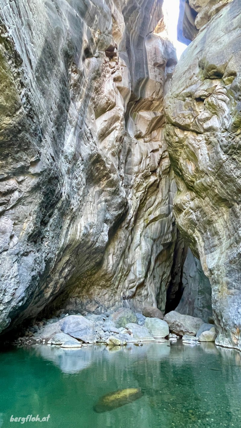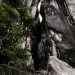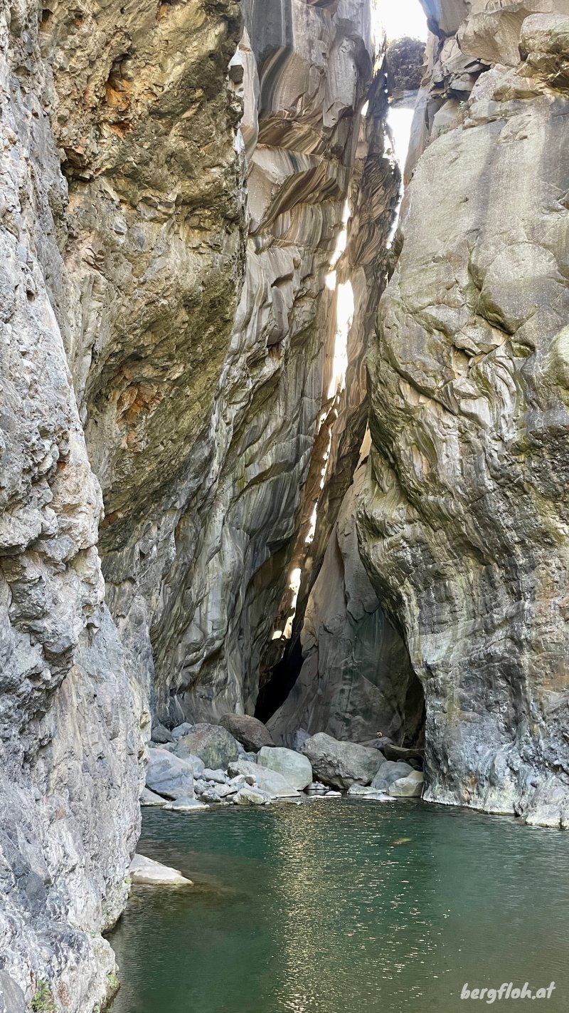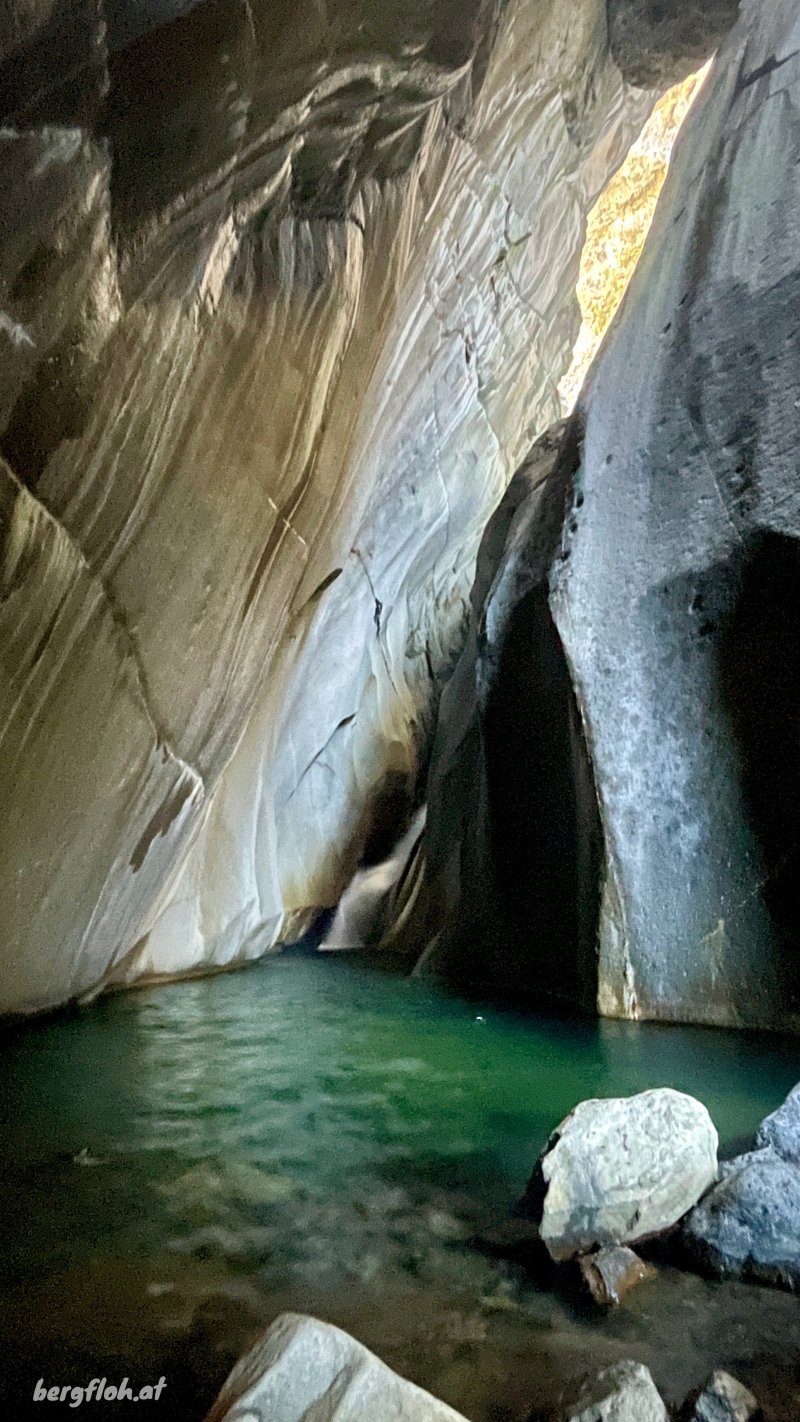on ne sait désormais plus comment s'en débarrasser qui viendront border le sentier. On domine la vallée profonde du Bras Rouge et on distingue très bien la faille de la Chapelle entre les immenses blocs constitués de syénite, une roche volcanique constituée en grande partie de feldspath (Photo 9). Bien profiter du point de vue sur les pitons classiques, du Pain de Sucre ou de la Chapelle avant de poursuivre. La descente est plus raide mais sans danger. Quelques nouveaux emplacements permettent d'avoir de jolis panoramas sur la Chapelle (Photo 10) et les blocs rocheux qui l'entourent le long du Bras Rouge jusqu'au Piton de Sucre. Le sentier, usé par les milliers de passages ne pose pas de problème particulier (Photo 11). Après une série de courts lacets sableux et caillouteux (Photo 12), le sentier arrive enfin dans le lit du Bras Rouge, juste après un coude de la rivière encombré de grosses roches (Photo 14). On distingue mieux les roches plus grises de syénite sur les falaises environnantes (Photo 15). Prendre à droite vers l'amont en marchant sur des parties sableuses ou des galets moyens en cherchant toujours le meilleur passage car aucune balise ne vient aider dans la progression. Seuls quelques cairns donnent des indications sur les meilleurs passages. La remontée est agréable et sans grand danger jusqu'aux gros blocs rocheux qui semblent boucher totalement le passage (Photo 17). Il faut parfois escalader les plus gros blocs tout en franchissant le cours d'eau. Certains sont assez hauts mais sans danger. On aperçoit de plus en plus l'étroit canyon de 120 m de hauteur (Photo 18). En arrivant près de la faille, le mieux consiste à poser le sac et prendre le minimum sur soi (maillot de bain) pour pénétrer au plus loin dans la cavité. Bien évaluer le niveau de l'eau avant de pénétrer sans danger (Photo 19). Ne jamais s'élancer dans le tunnel lors de forts épisodes pluvieux qui peuvent faire monter l'eau rapidement. Attention aux glissades possibles sur les déjections de la faune locale (Photo 21). La lumière a du mal à pénétrer le canyon et il ne faut pas se précipiter au risque de chuter. Profiter d'être aussi près pour comparer la pierre à celle qu'on est habitué de rencontrer en randonnée. Si on avance assez, on se retrouve devant un grand bassin dont le niveau dépend du débit du Bras Rouge et peut imposer de nager (Photo 24). Après une visite à la cascade souterraine puis un bain forcé dans le bassin à la sortie de la Chapelle (Photo 25), reprendre le chemin inverse. Marcher le long du Bras Rouge jusqu'au sentier pris à l'aller, le dépasser et profiter de quelques petits toboggans (Photo 26) ou tenter une baignade dans un des bassins qui attirent le regard et donnent l'envie de pique-niquer sur une berge rocheuse (Photo 27). On peut, sans trop de danger, poursuivre vers l'aval et marcher le long de la rivière et de l'Îlet du Bras Rouge jusqu'à la jonction du Bras Rouge et de la Ravine Henry Dijoux puis du Sentier de l'Îlet à Cordes, qu'on empruntera sur la gauche pour rejoindre Cilaos. Faire demi-tour, emprunter le sentier et entamer la remontée à Cilaos qui paraîtra plus longue car elle comporte plus de pentes positives.