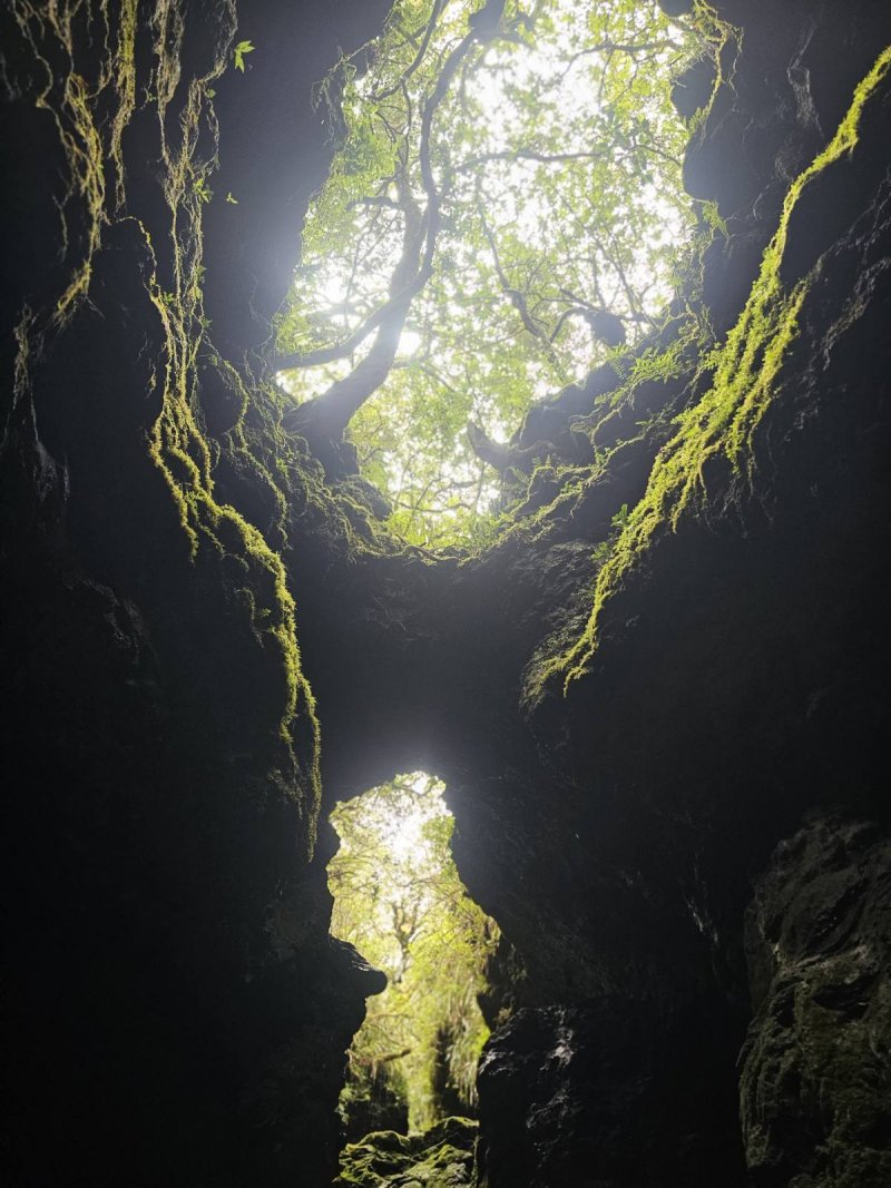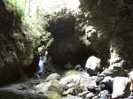 Lors de la remontée, un peu après la ligne des 1250, repérer une cascade coulant sur le bord du sentier. En passant sur le petit sentier qui la domine, on peur remonter la Ravine Citron Galet et s'approcher d'une grotte, haute et profonde d'où surgit la rivière. On se trouve face à des souterrains et des trous issus d'effondrements dans lesquels l'eau souterraine se précipite en tourbillons (Photo 24). Le plafond arrive cependant à fournir assez de lumière pour bien se repérer (Photo 25). Claustrophobes s'abstenir. Voir pour cette particularité la randonnée organisée spécialement pour en effectuer la découverte ainsi qu'une balade à Fond de Sonje. Après avoir longuement remonté la pente, on profite à nouveau de splendides panoramas vers le Commerson et les remparts qui l'entourent (Photo 26). La dernière pente, la plus forte, permet de rejoindre le rempart en profitant également des magnifiques paysages vers Roche Plate (Photo 28).