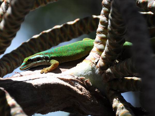 Le Gecko vert de Manapany (Phelsuma inexpectata) est un superbe petit reptile aux couleurs vives. Il est endémique de Manapany sur un habitat microscopique de 2000 x 200 m. Il est facile à repérer sur les troncs de palmiers, vacoas ou badamiers le long de la plage de Manapany. On en voit en grande quantité en période de floraison car il aime certainement le nectar et participe ainsi à la pollinisation. Il voit pourtant sa population diminuer assez vite en raison de la présence d'un redoutable ennemi venant de Madagascar, vert et rouge comme lui, mais pouvant atteindre 20 cm et adorant la viande de gecko. Une campagne a été lancée afin de signaler le plus rapidement possible la présence de cet ennemi.