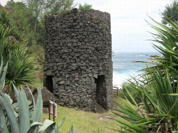 Construit en 1854, ce four à chaux utilisait les coraux de Grande Anse et Grands Bois pour fabriquer de la chaux. On alternait des couches de coraux et de bois pour une combustion qui durait 3 jours entre 800 et 1000°C. L'usine était alimentée par radeaux venant de Grande Anse ou par la route en passant par le Chemin des Anglais.