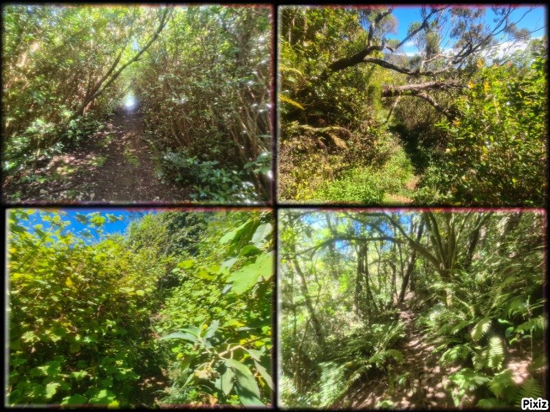 Tout le sentier se suit facilement, même si j'ai bien vu que certains passages sont devenus plus resserrés du fait de l'envahissement des pestes végétales (voir PHOTO 2 en bas à gauche : le passage le plus "compliqué" de la boucle avec la vigne marronne. Mais ça passe !).