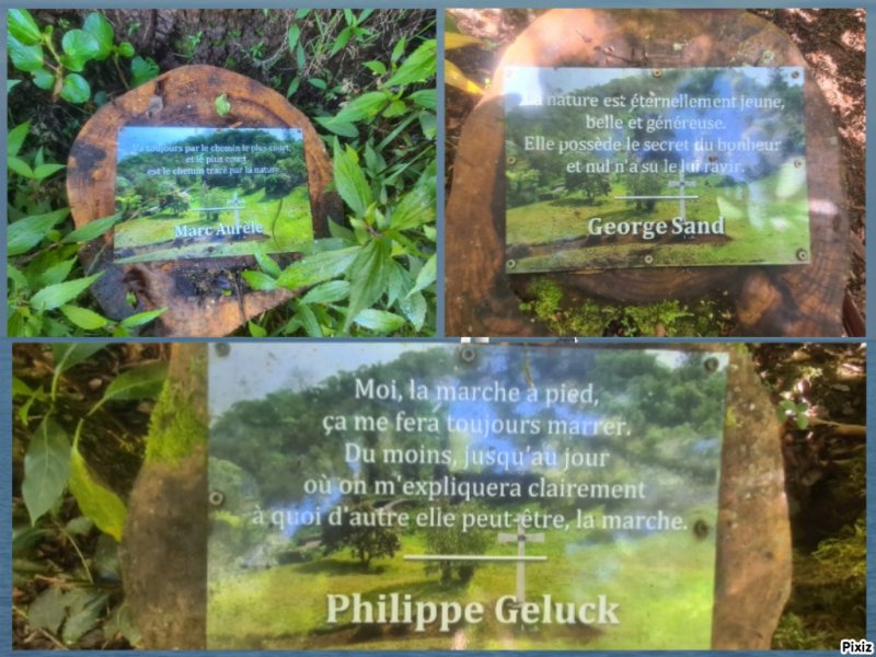 Je n'ai pas vu de panneaux botaniques, par contre j'ai apprécié avec le sourire aux lèvres les fréquentes citations tournées vers l'écologie et la Nature (PHOTO 3: la sentence de P. GELLUCK, avec son humour si reconnaissable, ravira les randonneurs !😁😂😂).