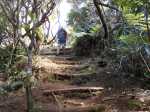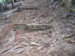 Le terrain est gras et très glissant, avec des hautes marches très abruptes par moment.