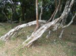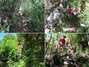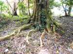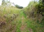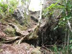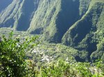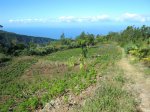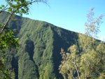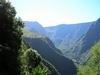 La randonnée débute à Fond de Galet en montant vers Grand Galet, quelques mètres avant l'élevage de truites. Un curieux escalier menant nulle part marque le début de la boucle. Il devait certainement soutenir une des canalisations très nombreuses dans la région pour arroser le cresson. Le sentier puis un large escalier en pierre, abrupt (Photo 1) traversent des bananeraies et quelques cultures avant de rejoindre le Chemin Mallet, petite route agréable entre cases et vergers qui permet de retrouver plus loin le haut de la Cascade Langevin et le début du village de Grand Galet (Photo 2). Traverser le village dans toute sa longueur en prenant la direction de Cap Blanc. Quelques mètres avant la station de chlorage située à la fin de la route bétonnée, bifurquer à gauche pour entrer sous les bananiers et rejoindre la partie boisée du rempart (Photo 3). Le sentier devient très vite abrupt par moments et les mains sont indispensables pour franchir quelques passages rocheux. Il est étroit, comporte peu de lacets mais est difficile à perdre des yeux. Les paysages sont assez rares en raison de la végétation touffue (Photo 4). Certaines portions font presque penser à de l'escalade et demandent un bon entraînement. D'autres, étroits entre roches et bambous balais permettent de se reposer un peu (Photo 6). De passages rocheux, enracinés ou étroits, on arrive en moins d'une heure au sommet du rempart et on bifurque sur la droite pour prendre la Rue Emile Mussard, en direction de Grand Coude. Le kilomètre qui suit s'effectue sur le bitume, traverse la Ravine Ti Bon Dieu proche d'un grand oratoire dédié à des dizaines de Saint-Expédit et permet de souffler un peu jusqu'au départ du Chemin de la Croizure qu'on rencontre à gauche dans une zone habitée, près d'un arrêt de bus. Les paysages sont devenus plus accessibles au-dessus des champs (Photo 7). D'abord large, la route se transforme en piste le long d'un grand champ de géraniums rosa (Photo 8 et 9) puis se poursuit en légère descente sur un sol le plus souvent herbeux ou comportant une bande de terre due aux fréquents passages de joggeurs (Photo 10). La circulation régulière des tracteurs aide également à la rendre très praticable. Les hautes cannes fourragères guettent la moindre inactivité qui leur permettra de reprendre possession des lieux (Photo 11). Remarquer les nombreux pieds de thé encore présents dans les haies ; Grand Coude ayant été à une époque un grand producteur de thé et de géranium (Photo 13). Le bruit des voitures indique que la route est proche et on la rejoint à quelques mètres des premiers emplacements de pique-nique. Longer le rempart en sous-bois sur une trace de sentier bordée de galets qui serpente de table en table et traverser la totalité de cette longue zone de repos, régulièrement fréquentée en fin de semaine (Photo 14). On passe près de très belles racines de bois maigre (Photo 15) ou d'arbres tortueux (Photo 16). Plusieurs endroits permettent de profiter des paysages sur la vallée de la Rivière des Remparts de l'autre côté de la route. Un belvédère permet de beaux points de vue sur celle de la Grande Ravine vers Grand pays (Photo 18) et de la Rivière Langevin (Photo 19). On domine également le village de Grand Galet et la cascade Langevin (Photo 20). A la fin de la zone, repérer à gauche, au plus près du rempart, le sentier qui file plein sud en rasant les bois de couleurs et un long champ de canne sur la droite (Photo 21). Une assez longue descente débute, facile le long du rempart à part quelques marches pour éviter un rocher ou un arbre plus gros que les autres (Photo 22). Le sentier Bérénice plonge sur la gauche en direction de la Rivière Langevin (Photo 25). La descente est assez fluide et peu dangereuse (Photo 26). Quelques arbres en travers, des rochers tombés de la falaise, des vestiges de récolte de baies rose ponctuent le trajet qui se termine à un muret de pierres sèches, vestige des champs de l'époque (Photo 27). On continue par une traversée de l'étroite Ravine de Grand Coude. Quelques mètres plus loin, le sentier est bordé de part et d'autre de tôles où l'on retrouve la petite route empruntée en début de boucle. Prendre alors à droite puis le sentier descendant vers la Rivière pour retrouver le véhicule.